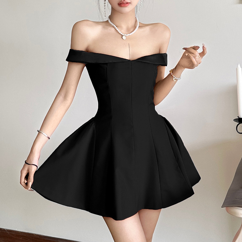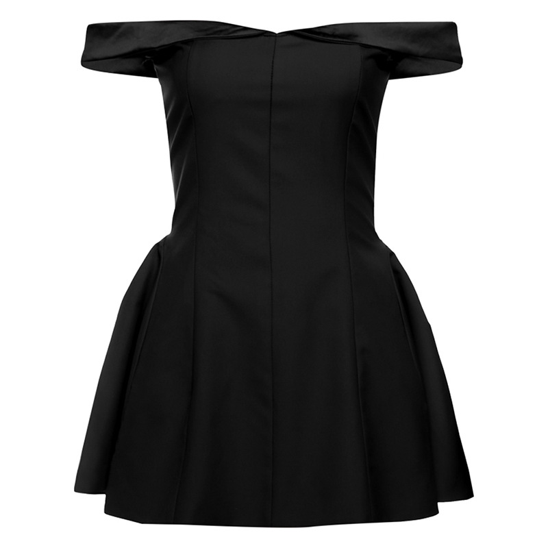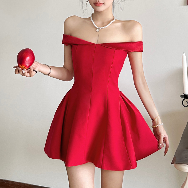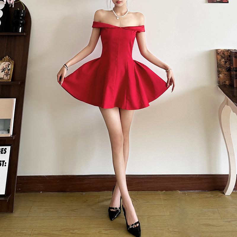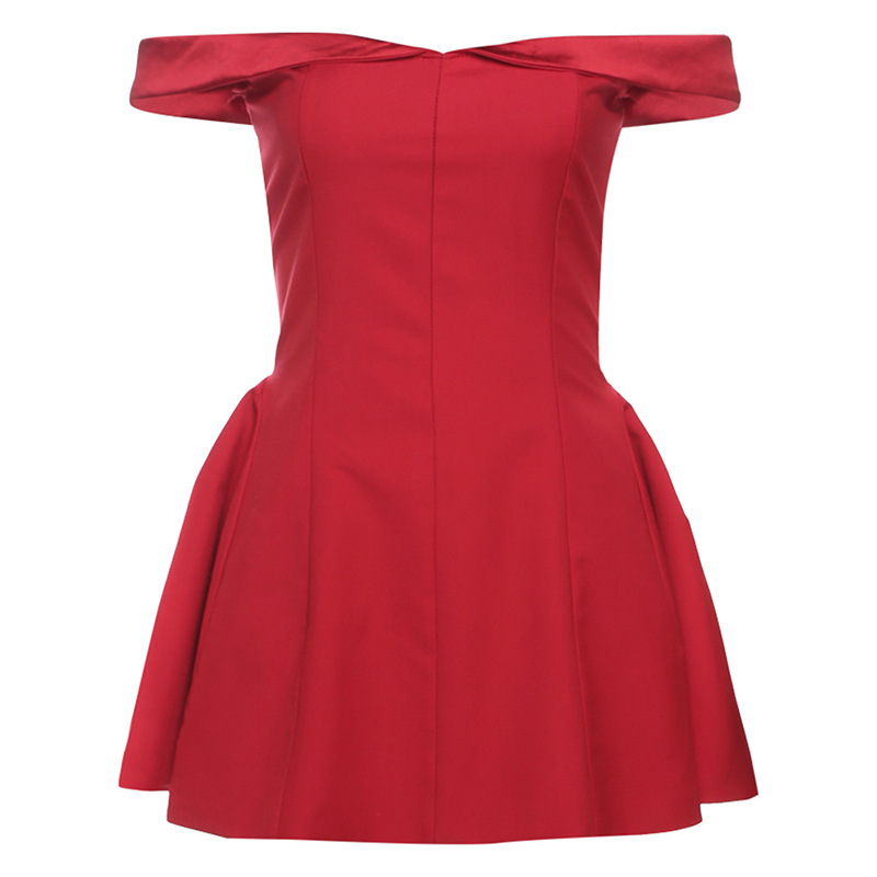 跨境欧美风新款女装时尚纯色露肩短款优雅修身圣诞连衣裙
