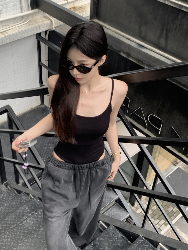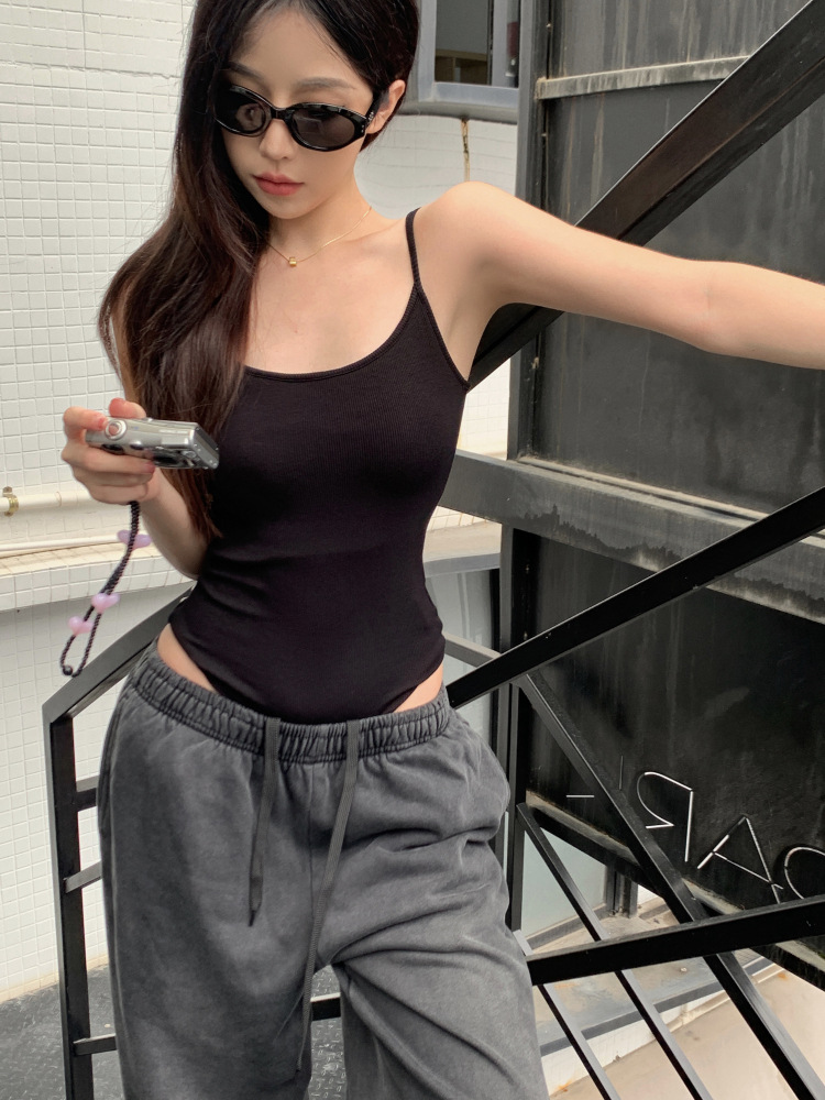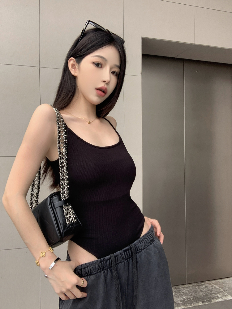 黑色露背吊带背心女春夏外穿内搭设计感辣妹修身无袖打底连体上衣