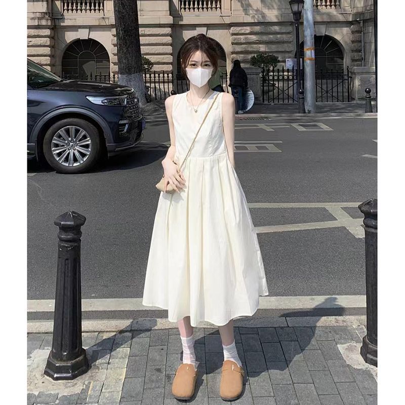 法式白色仙女连衣裙女春夏季新款小个子过膝气质打底背心长裙