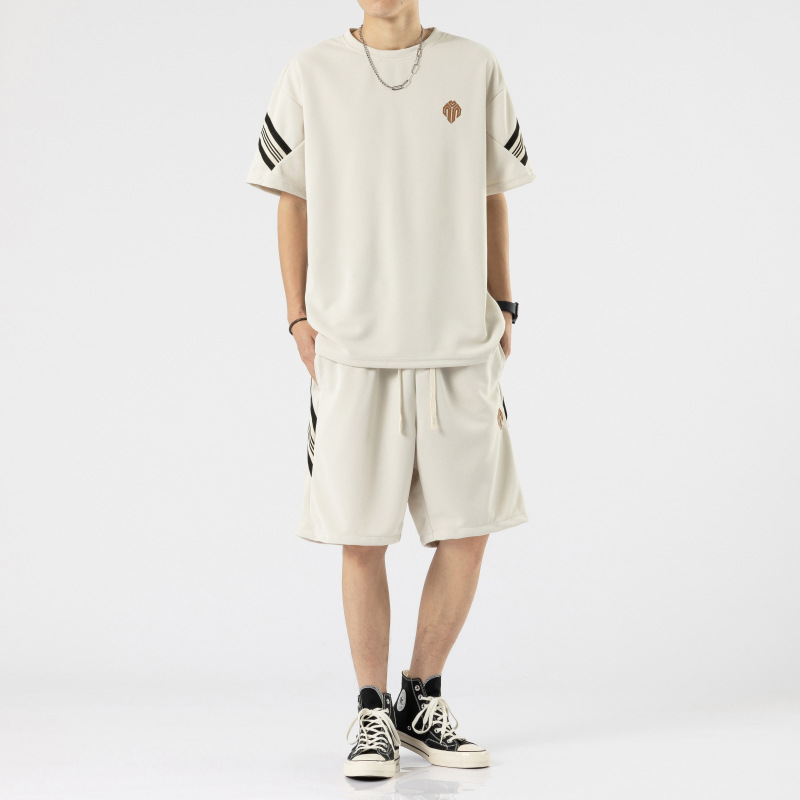 短裤套装男夏天薄款跑步休闲圆领短款两件套短袖五分裤大码套装