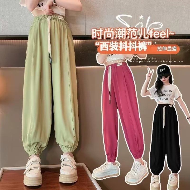 女童裤子春新款儿童冰丝防蚊裤夏季薄款长裤中大童宽松抖抖裤