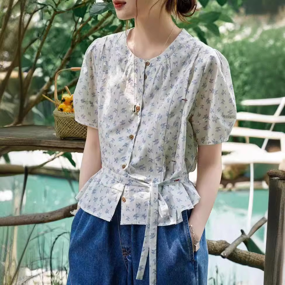 夏季一整套穿搭女新款韩版茶系设计感衬衫高腰半身裙两件套装