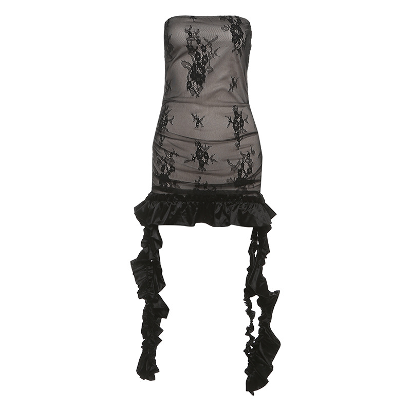 跨境欧美风新款女装时尚黑色蕾丝紧身短裙修身显瘦连衣裙