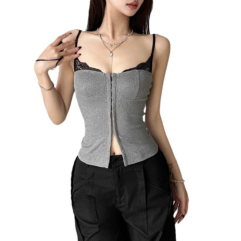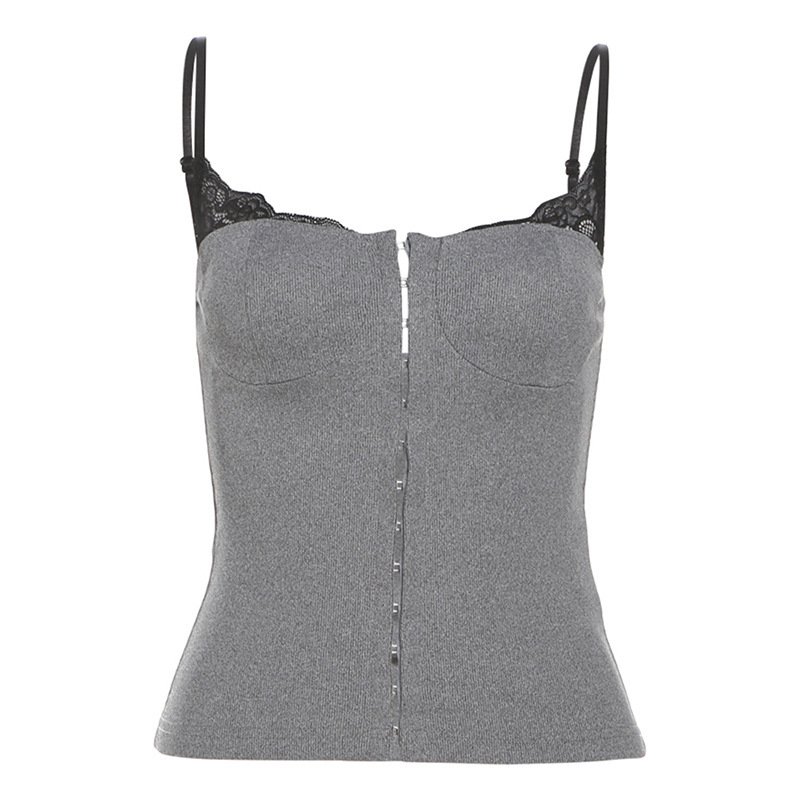 跨境欧美风新款女装复古蕾丝镂空露背修身纯色吊带小背心