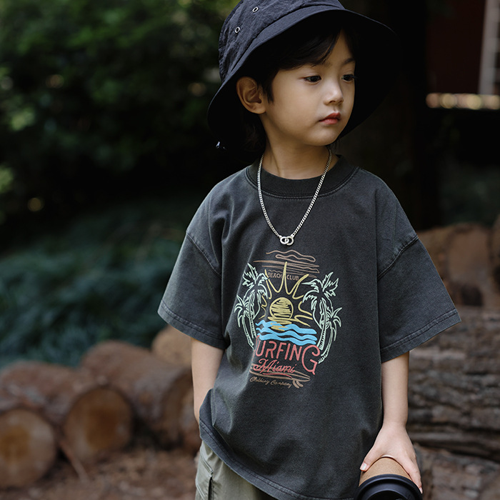 男童复古洗褪短袖T恤新款儿童夏季小童男孩夏装痞帅半袖上衣