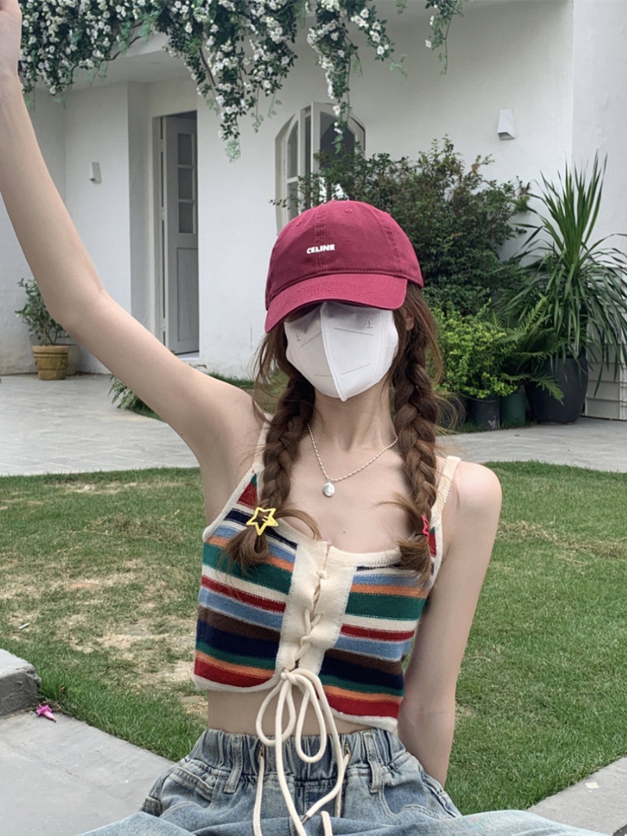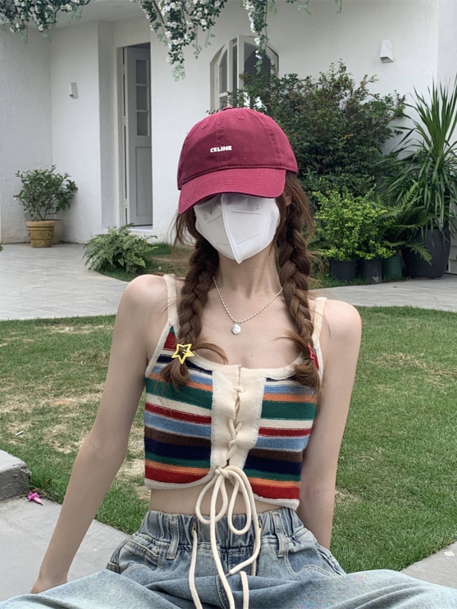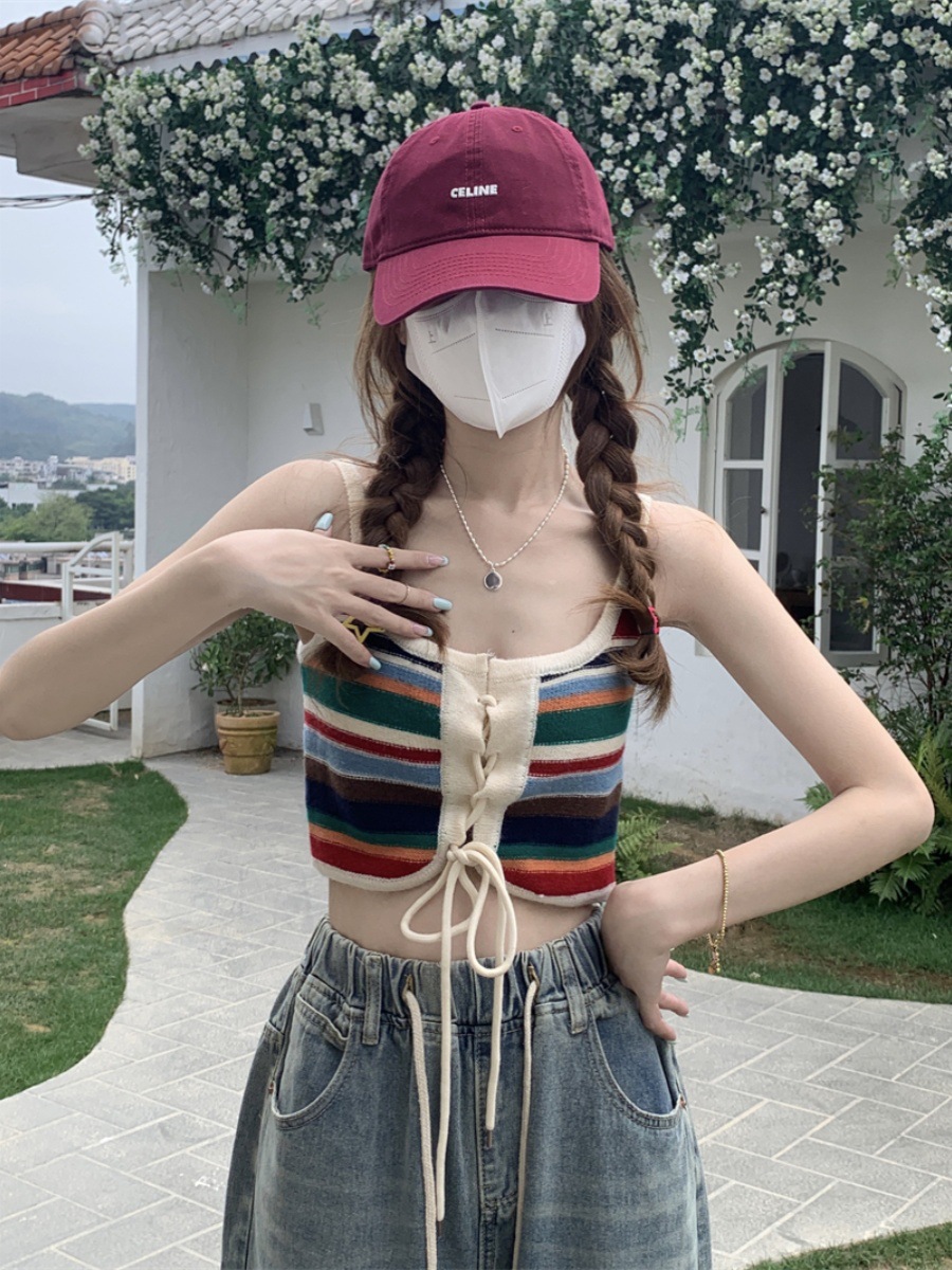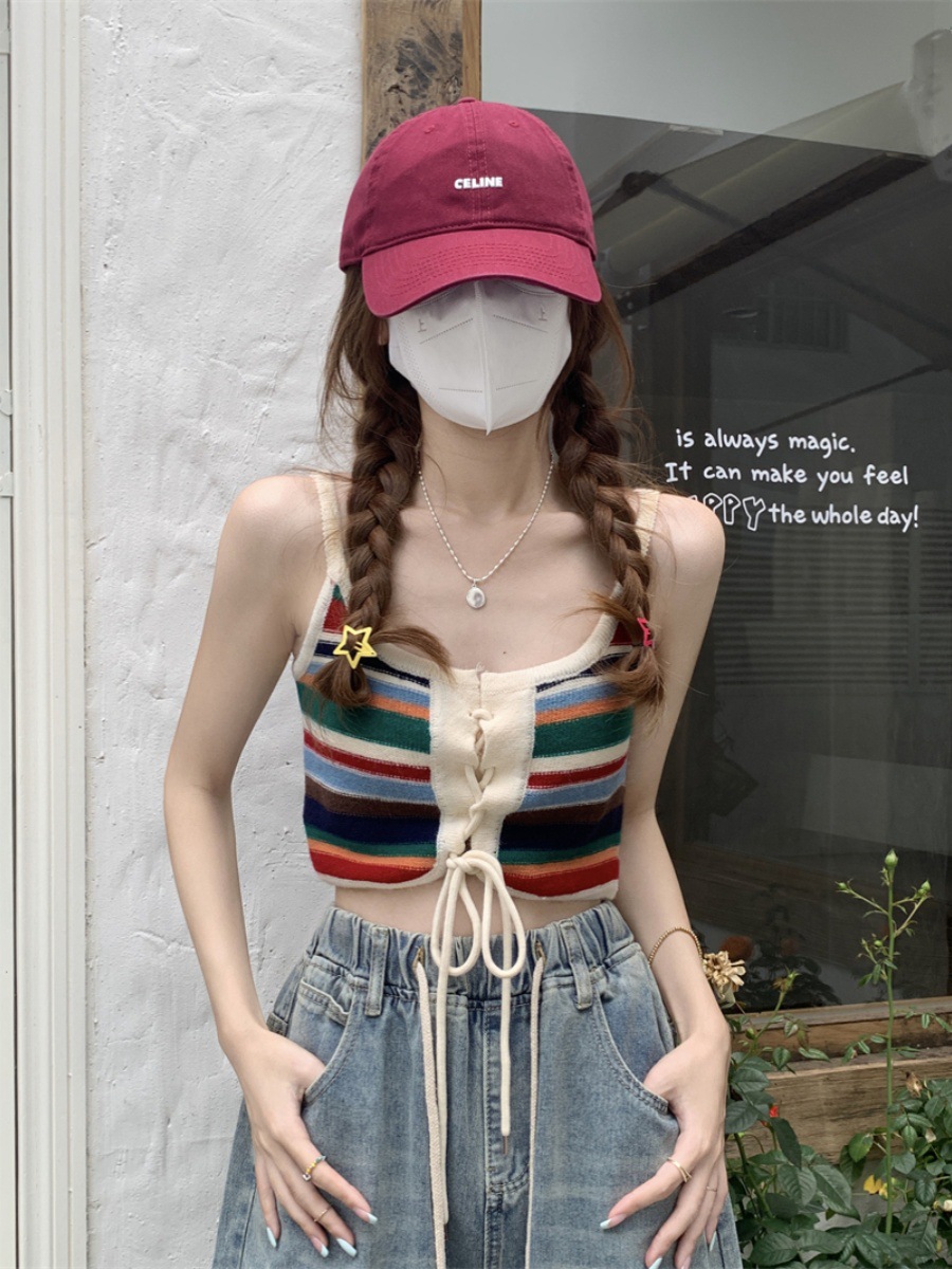 彩色条纹小吊带背心女夏无袖外穿美背坎肩遮副乳设计感多巴胺上衣