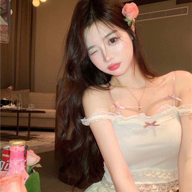 纯欲风蕾丝吊带小背心女夏季新款外穿短款蝴蝶结内搭白色辣妹上衣