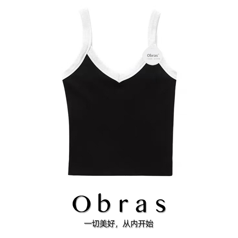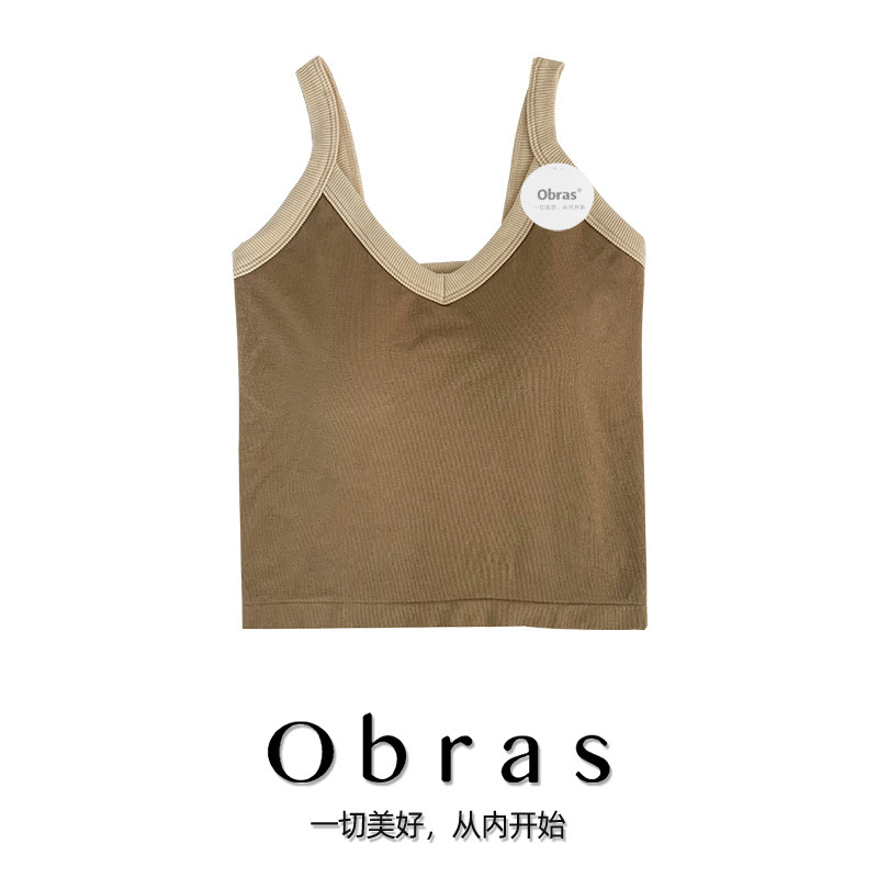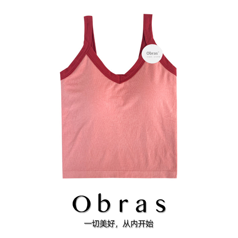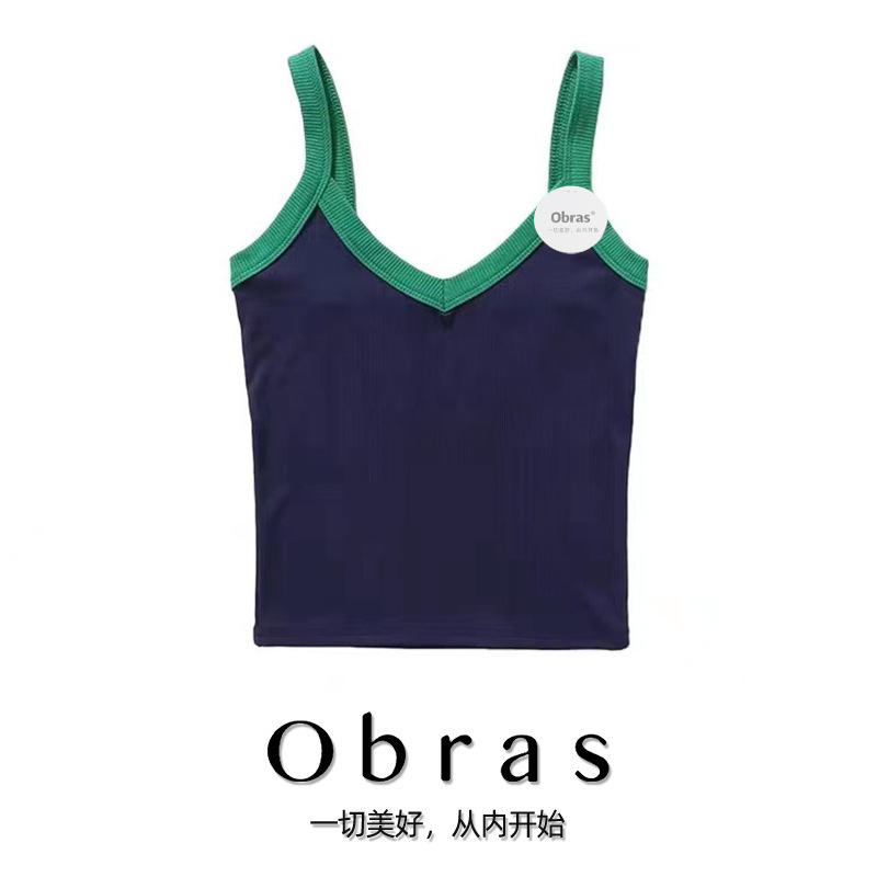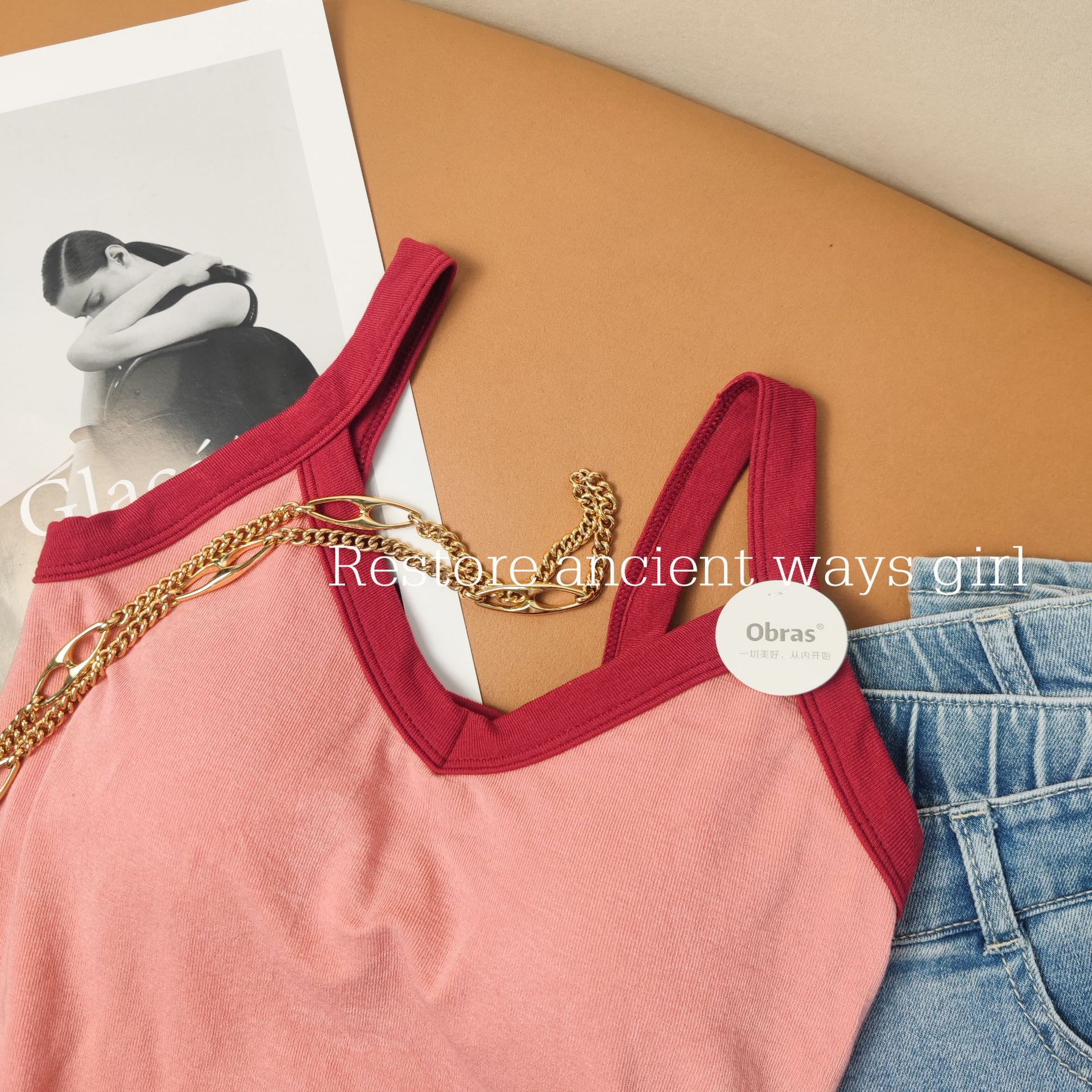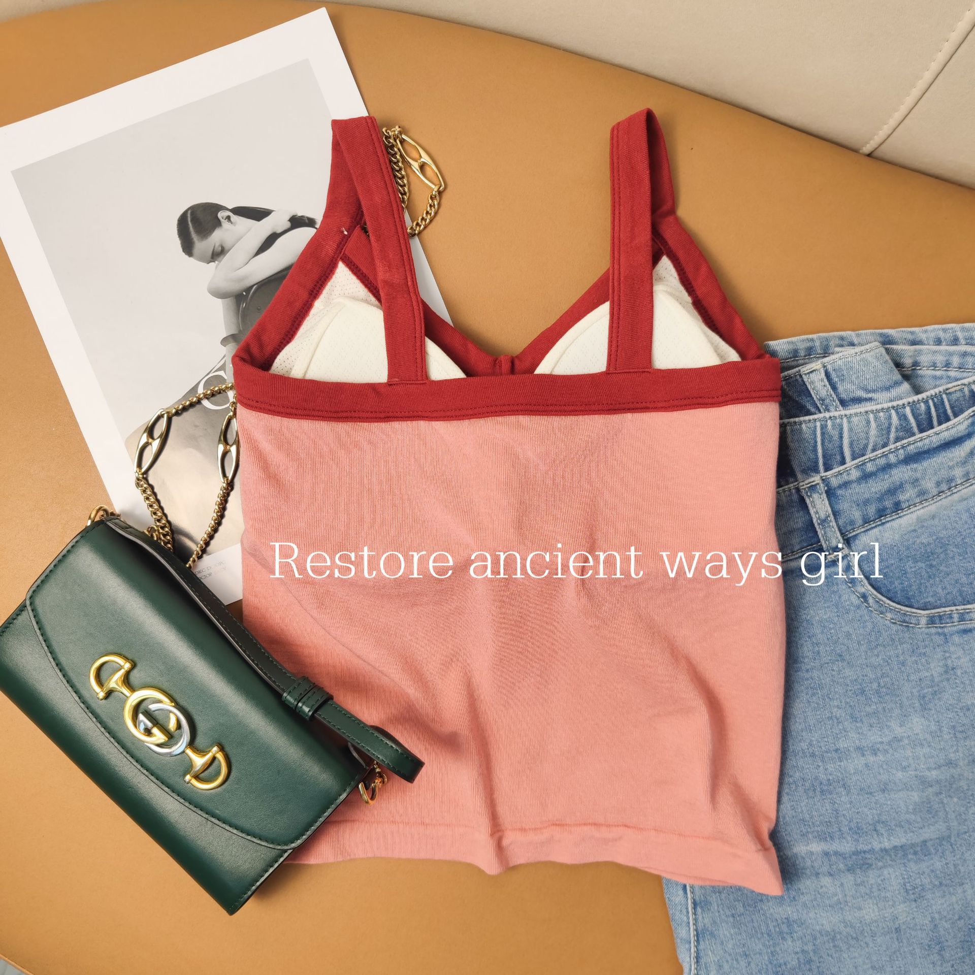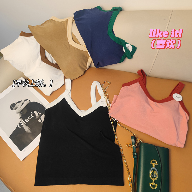 吊带背心女外穿内搭带胸垫修身显瘦辣妹美背打底背心V领撞色上衣