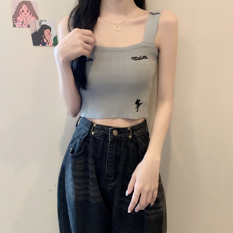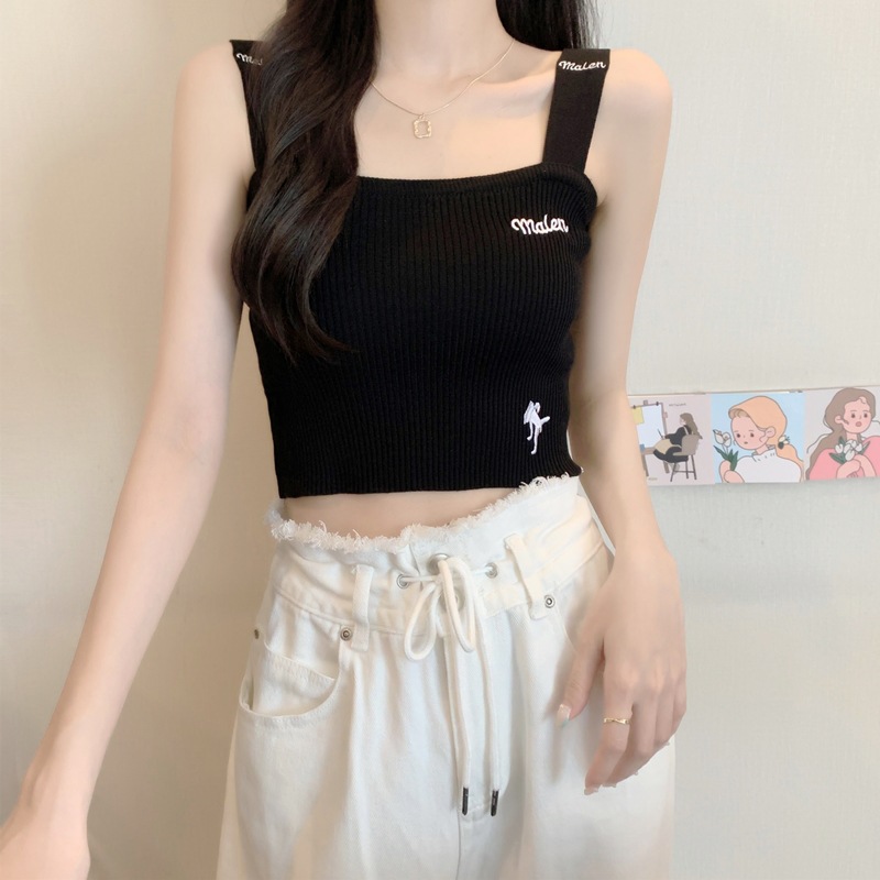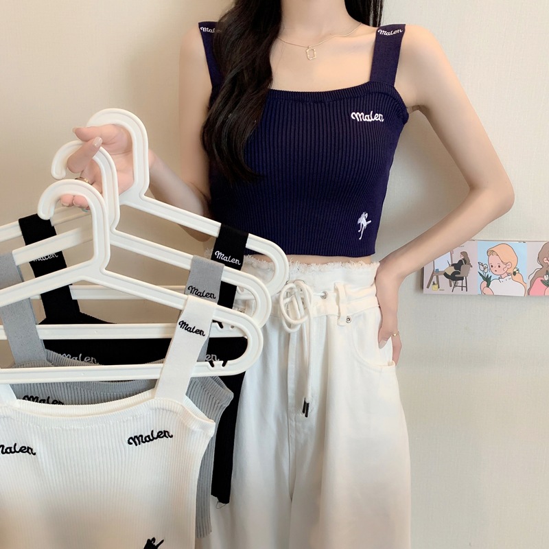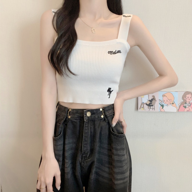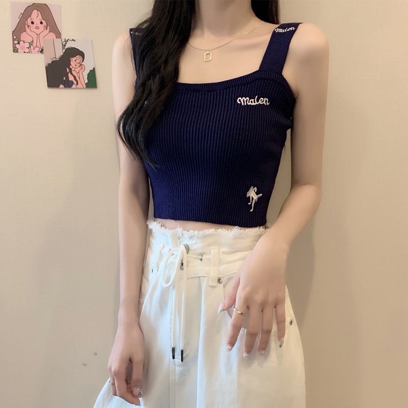 法式小众设计感外穿甜辣小吊带无袖上衣女夏短款内搭针织打底背心