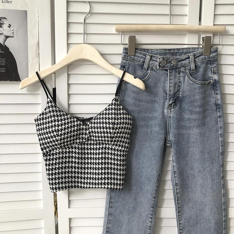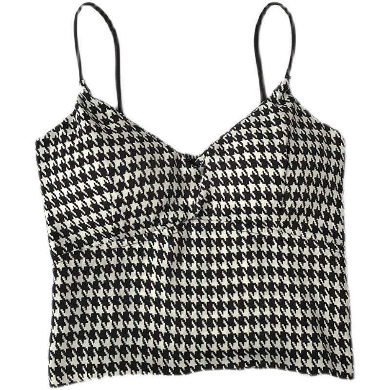 夏季韩版冰丝千鸟格美背性感无钢圈带胸垫小背心少女吊带背心裹胸