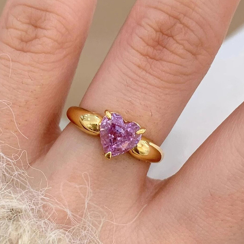 小红书爆款九紫离火戒女紫霞仙子紫色爱心宝石超闪精致心形指环