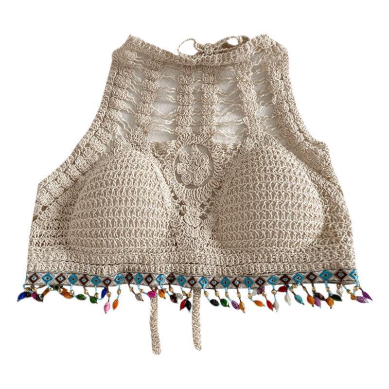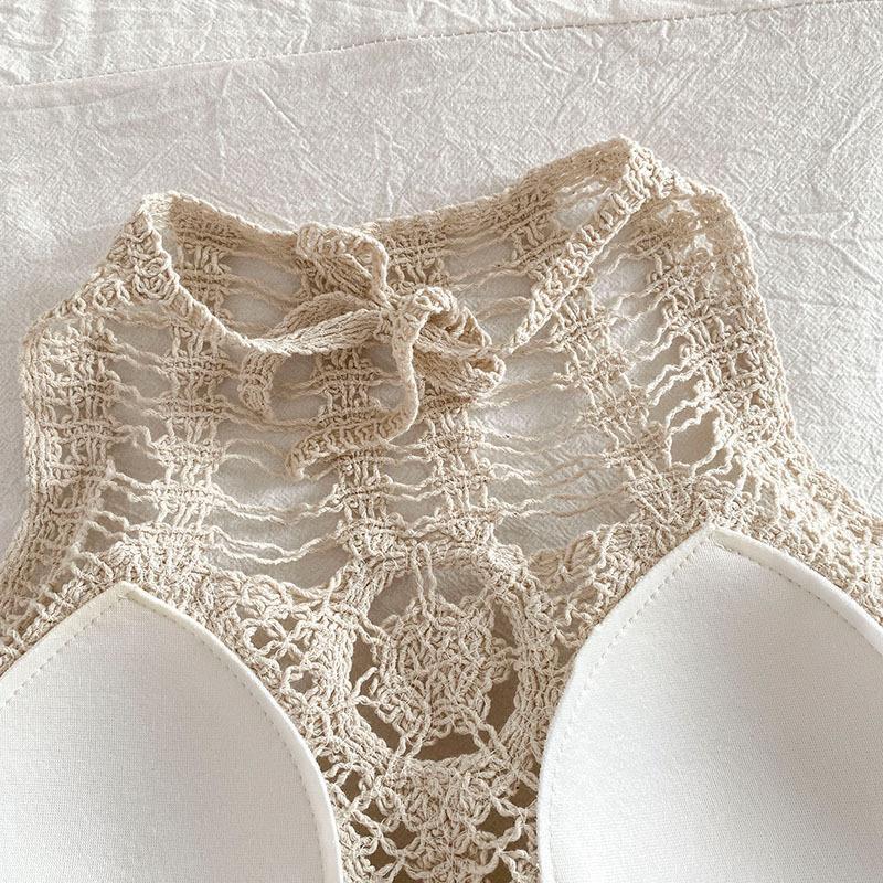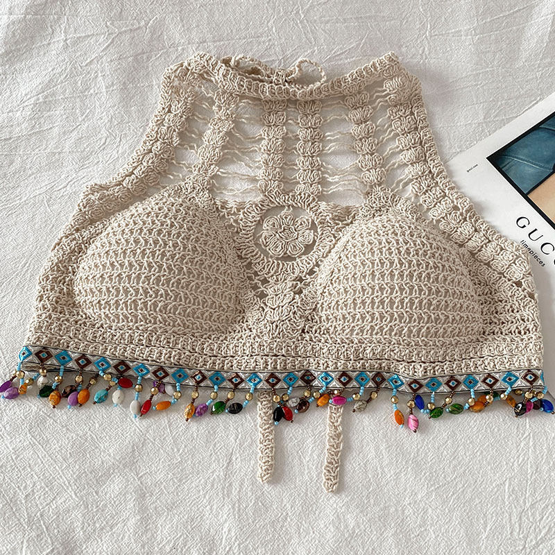 波西米亚民族风针织刺绣美背上衣系带露背抹胸镂空挂脖吊带背心女