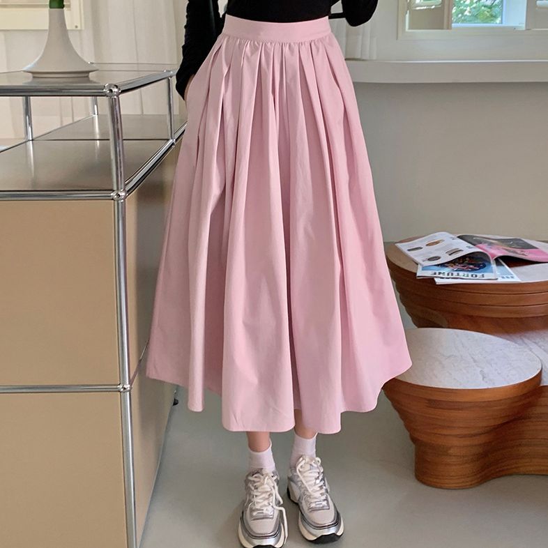 粉色高腰显瘦中长款a字半身裙女春夏小众设计感气质百搭伞裙