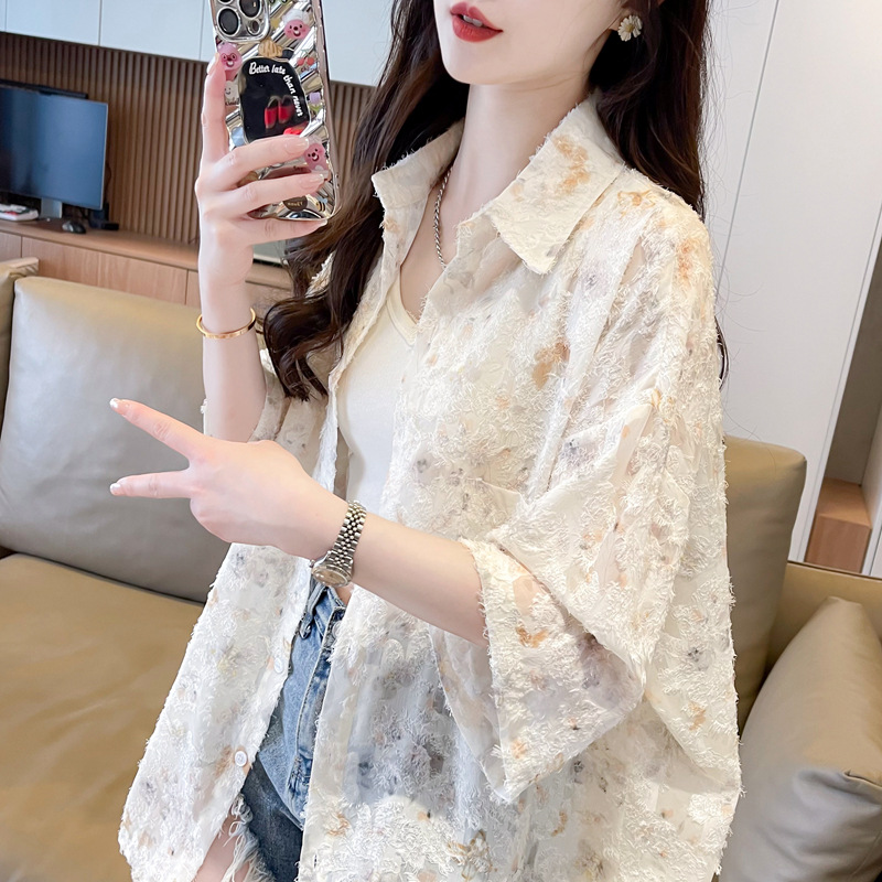 设计感花色短袖防晒衣女衬衫夏季2025年新款宽松慵懒风薄款上衣潮