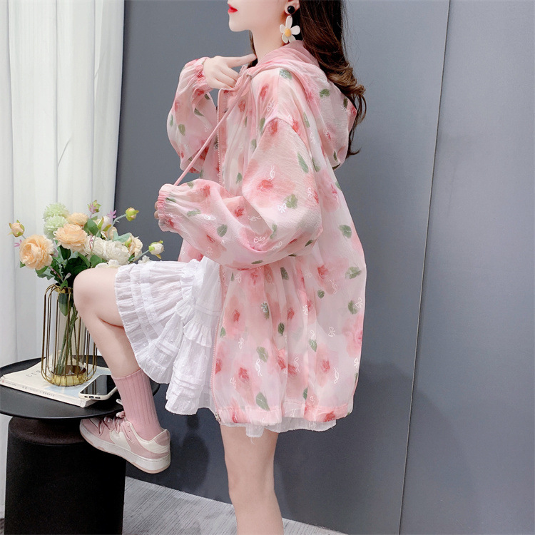 跨境防晒衣女拉链开衫夏季2025慵懒风印花设计连帽防晒长袖外套女