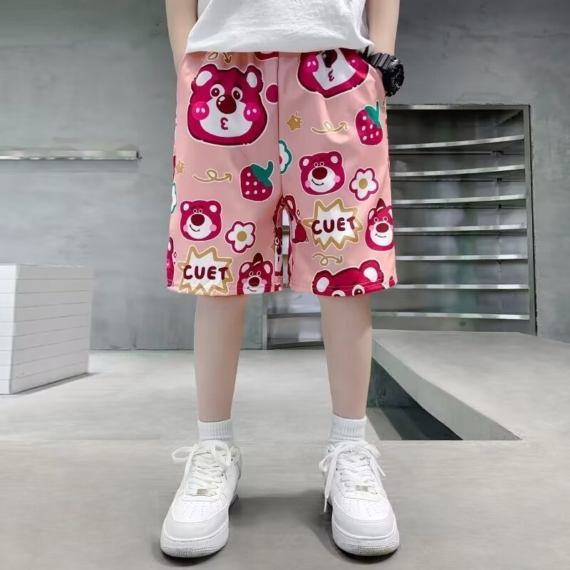 童装短裤草莓熊印花男同款短裤同款睡裤宽松时尚外穿沙滩裤阔腿裤