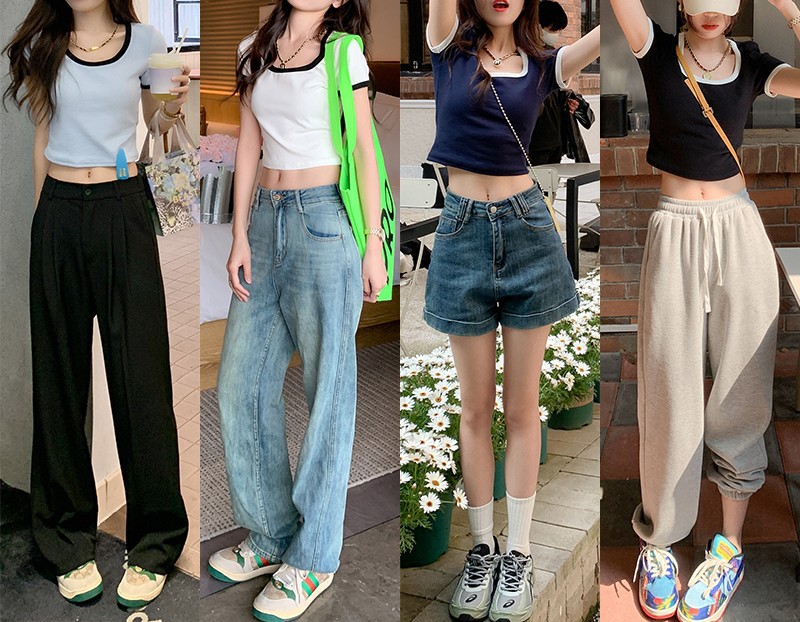 撞色螺纹U领正肩短袖t恤女ins潮夏新款宽松显瘦锁骨百搭棉质上衣