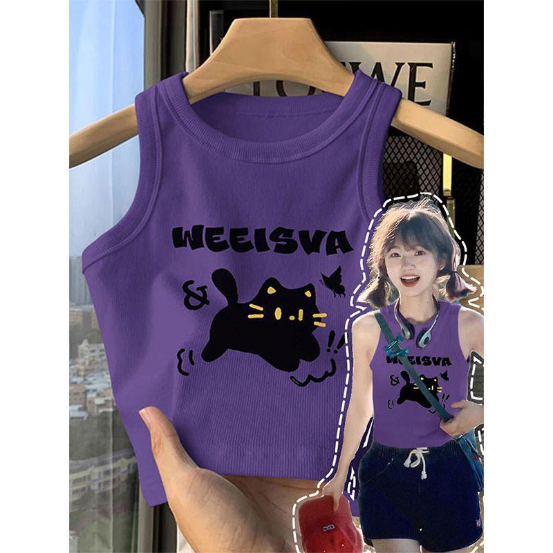 爆款高级感辣妹短款吊带背心t恤女夏季新款紫色显白百搭外穿上衣