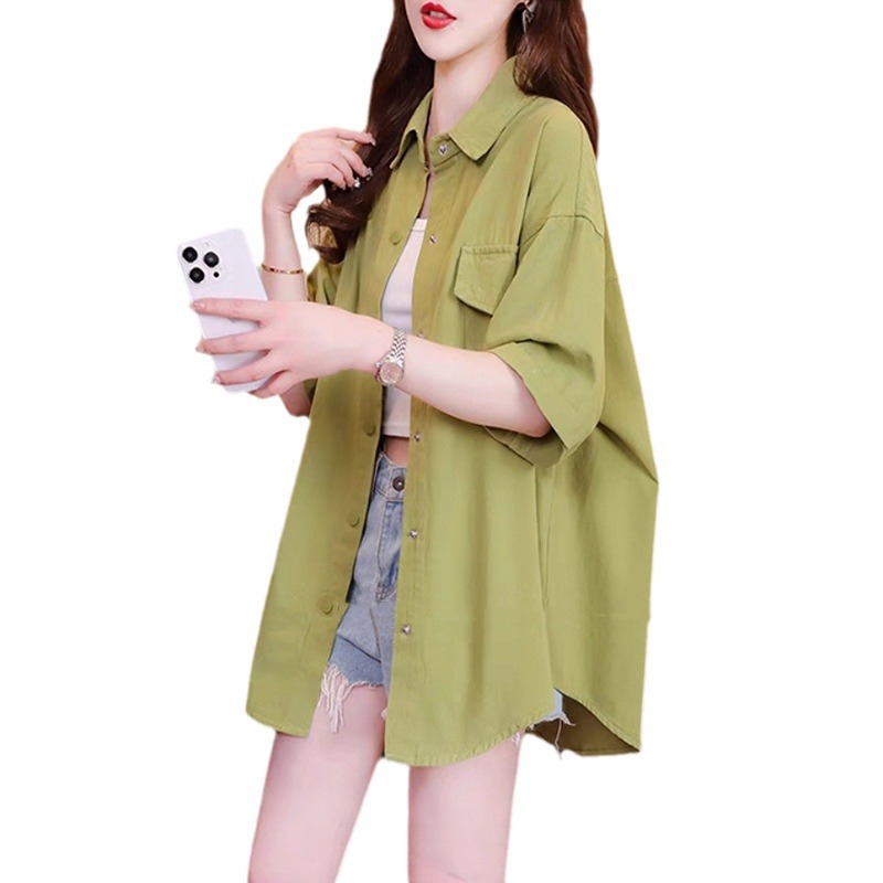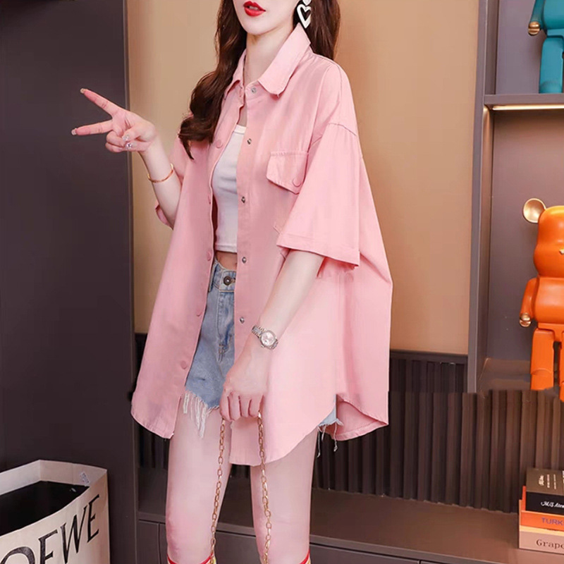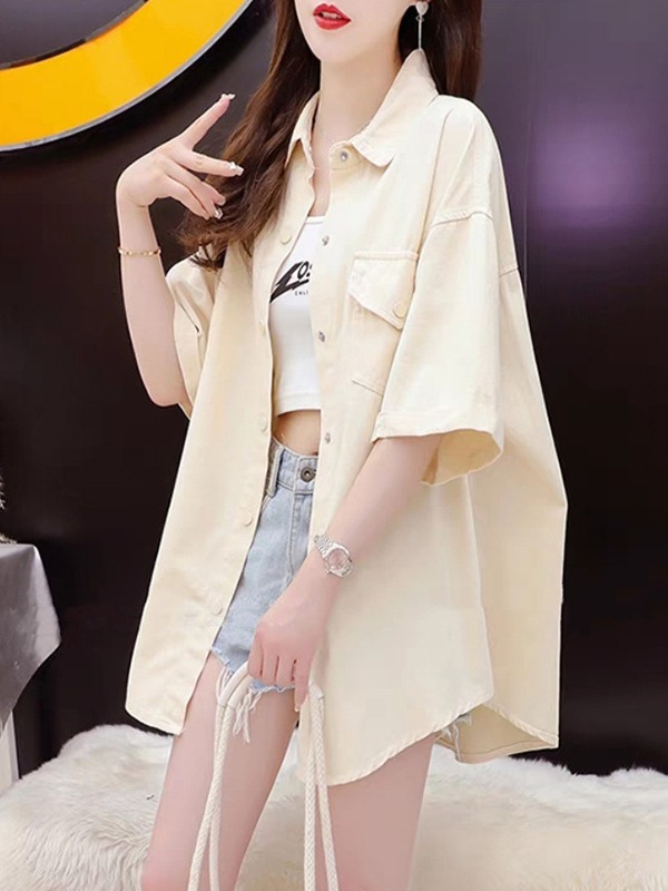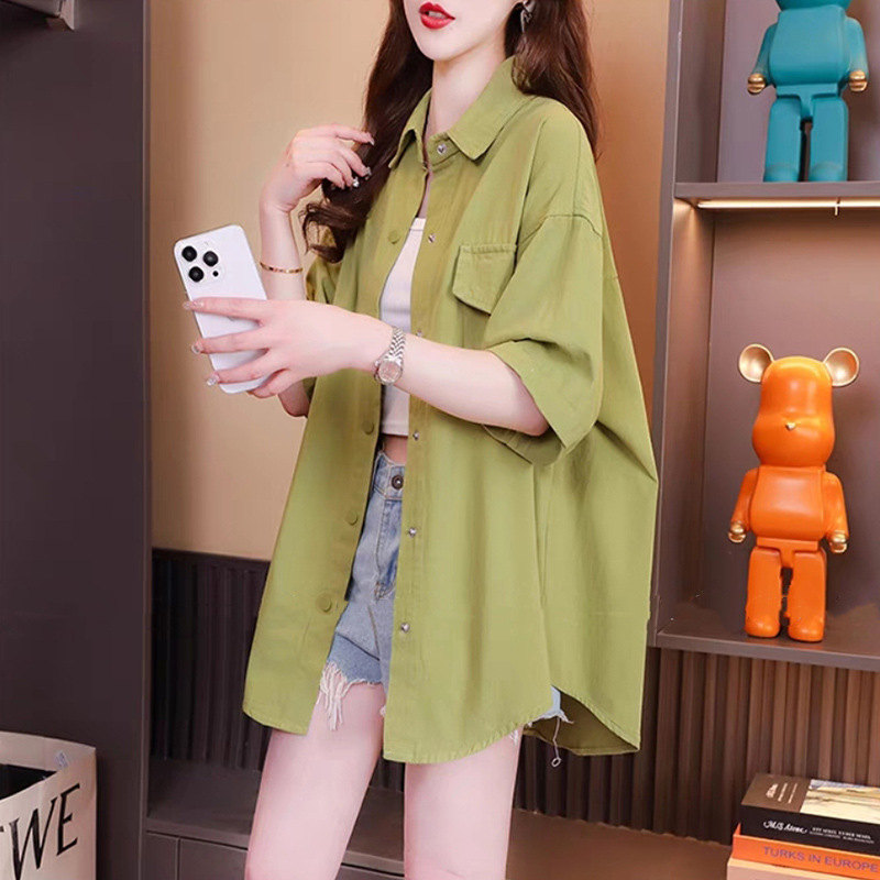 夏季2025年新款流行漂亮短袖衬衫女洋气韩版百搭休闲Polo领学生