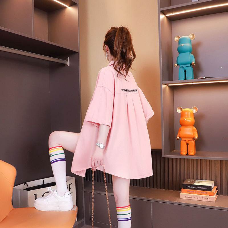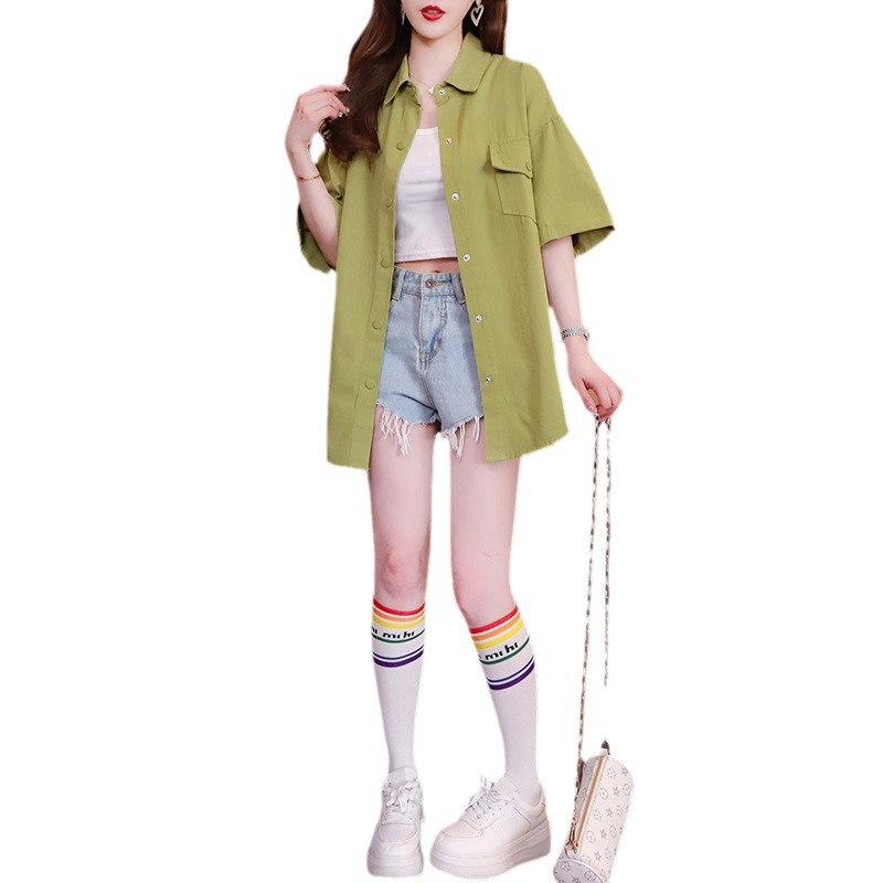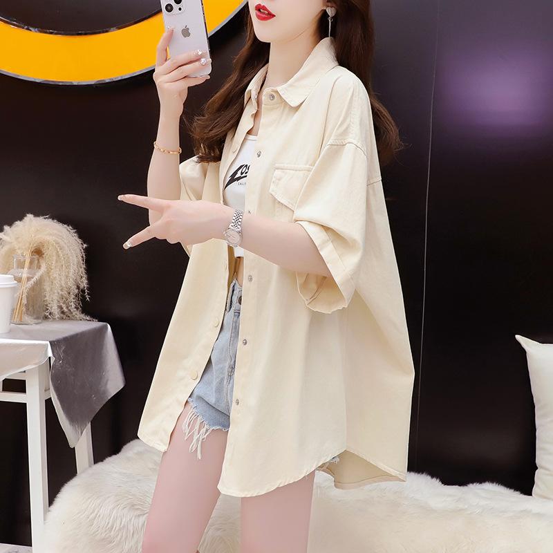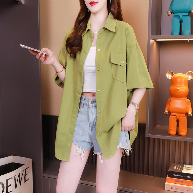 宽松休闲polo短袖衬衫外套女新款夏季薄款百搭显瘦设计感上衣