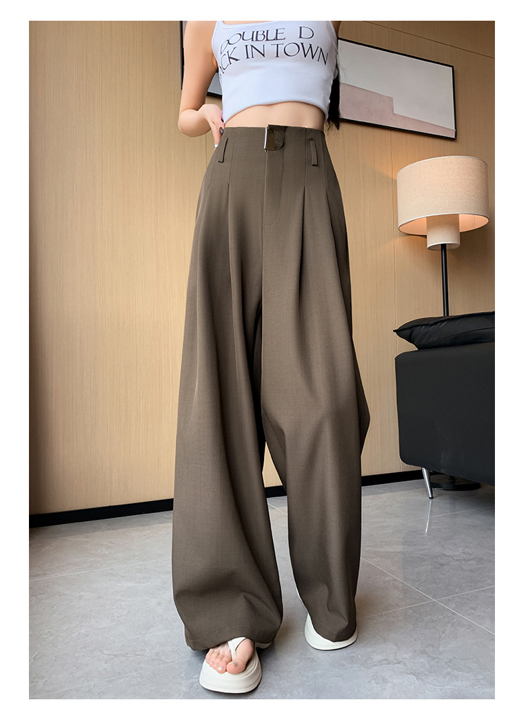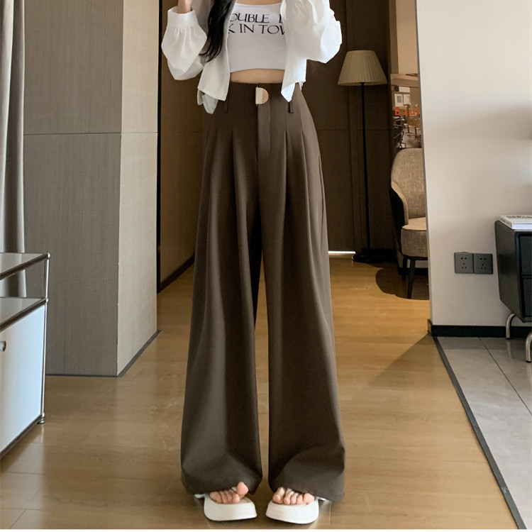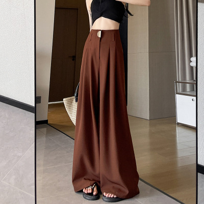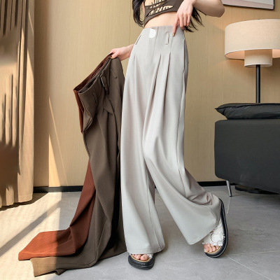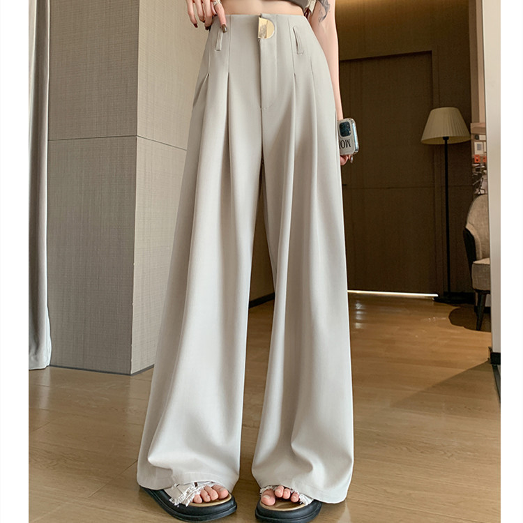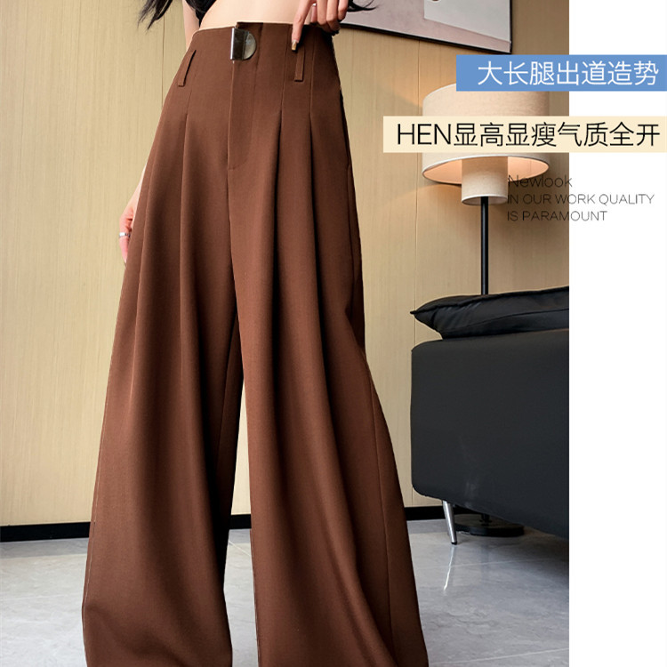 一粒扣设计感拖地阔腿裤女高腰垂坠感鱼骨西装裤宽松显瘦休闲长裤