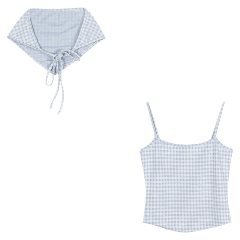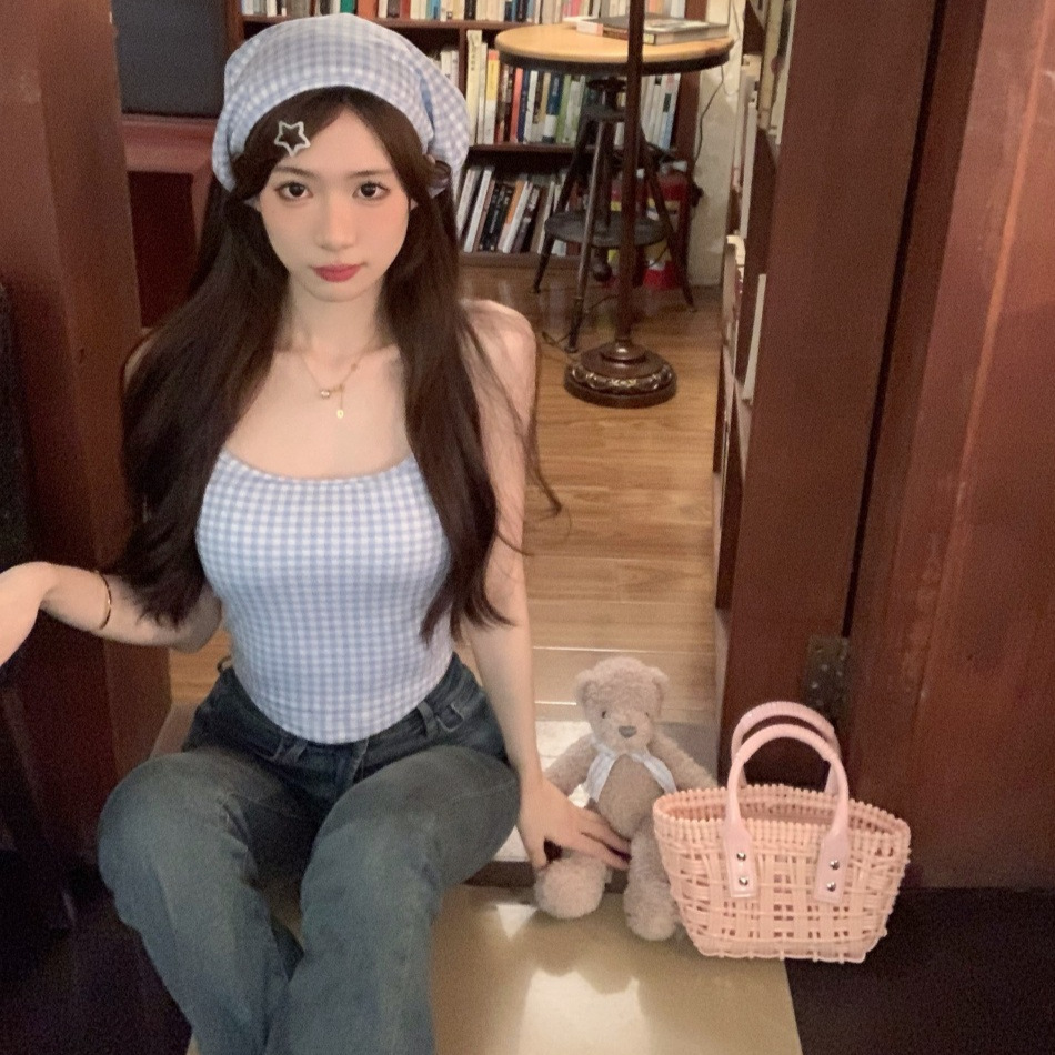 甜美辣妹格子吊带背心女夏纯欲小清新性感短款露脐内搭上衣外穿