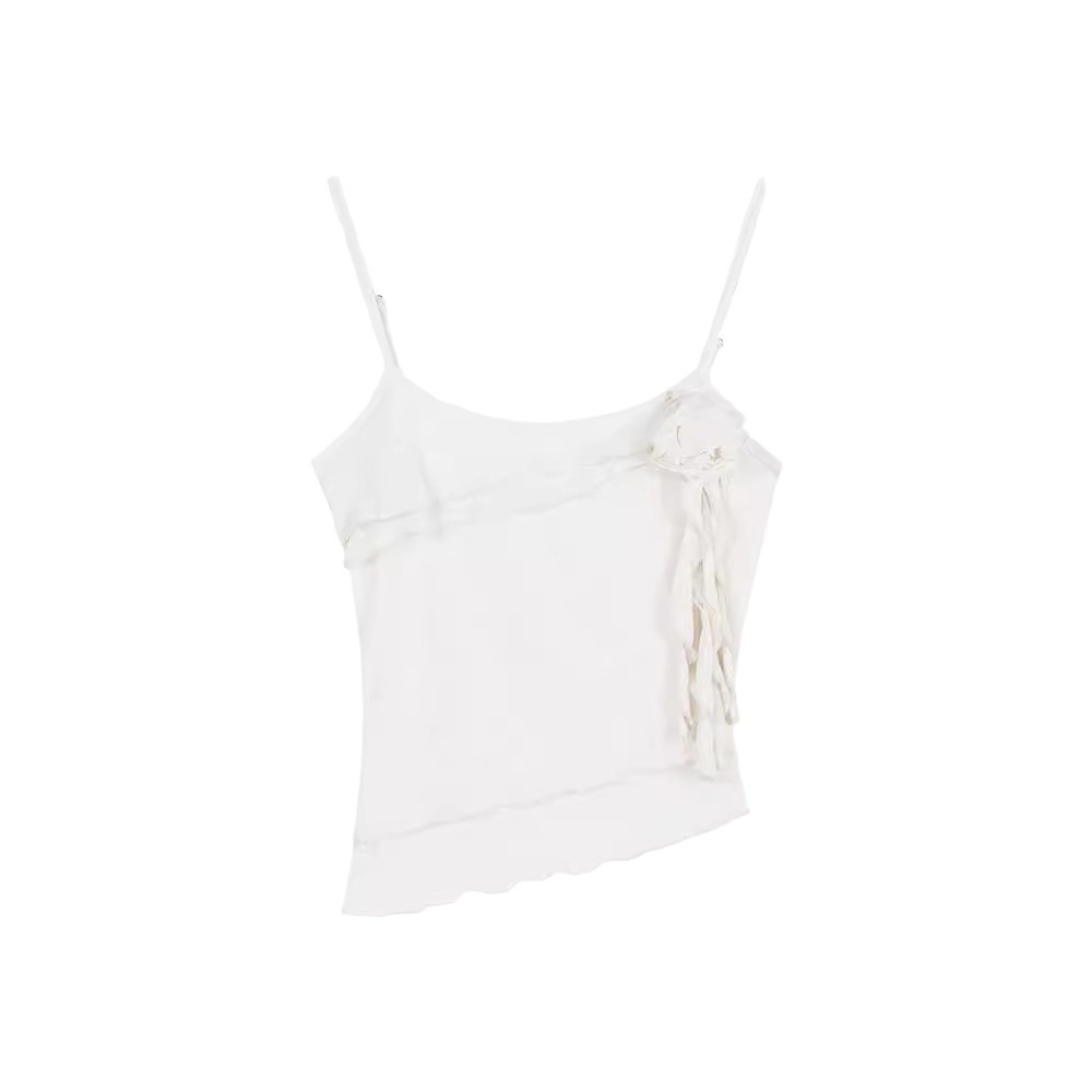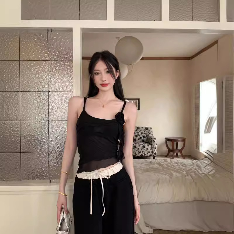 花朵网纱吊带小背心女夏季辣妹性感内搭法式浪漫双层蕾丝上衣外穿