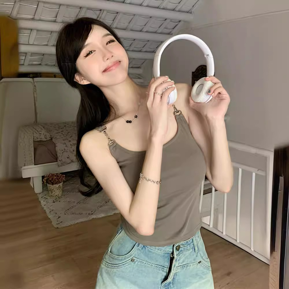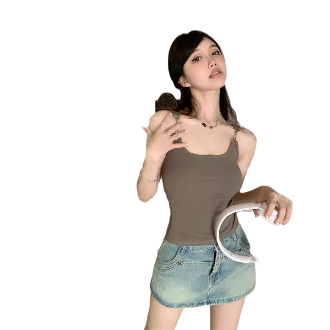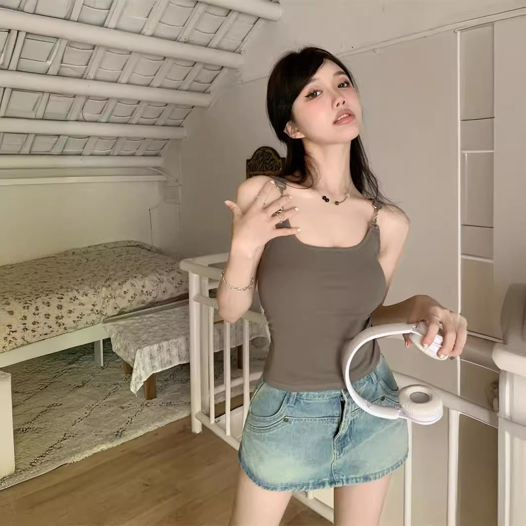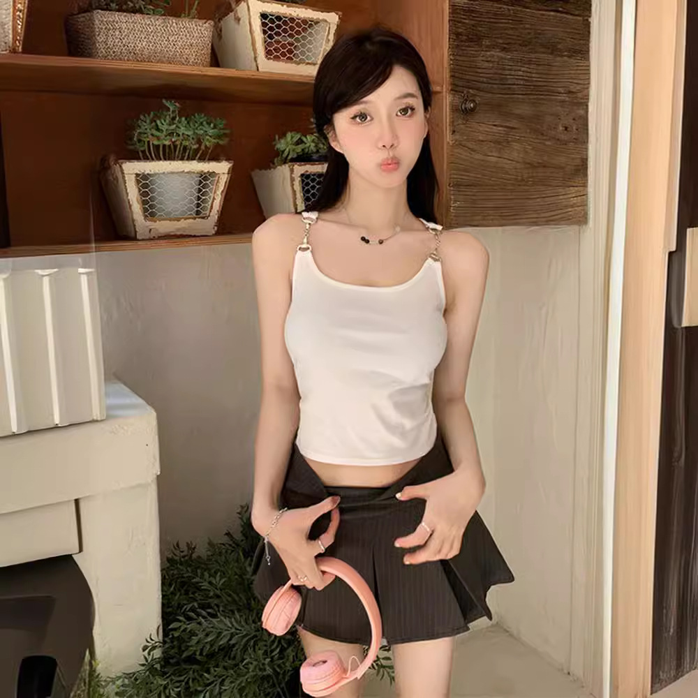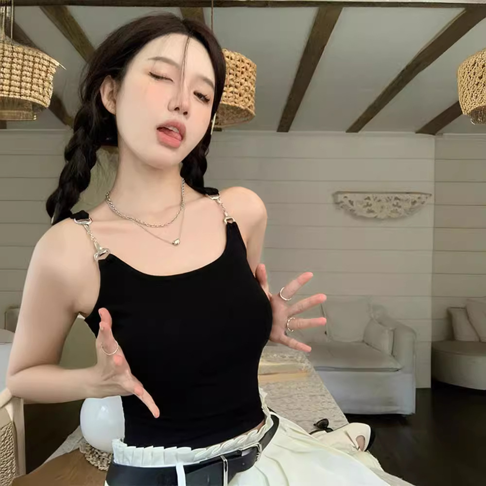 外穿无袖短款黑色吊带背心夏季辣妹网红别致设计感修身打底上衣