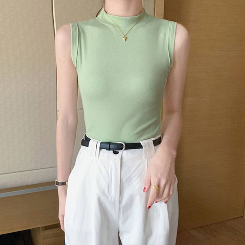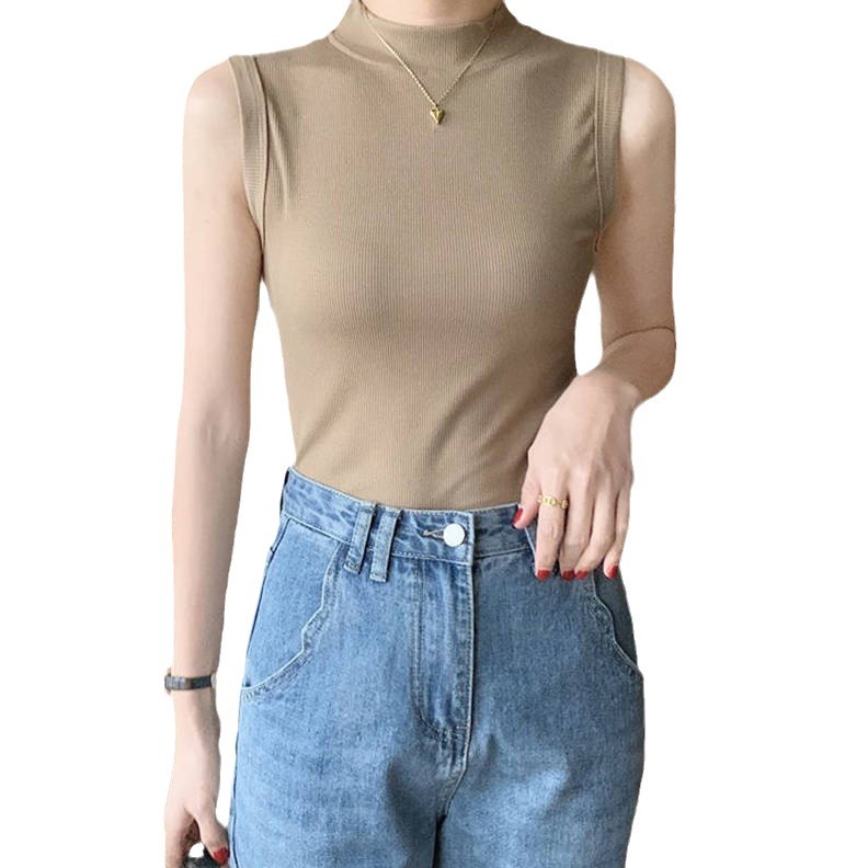 修身无袖背心女立领短款上衣配高腰裤2025年秋季冰丝螺纹打底小衫