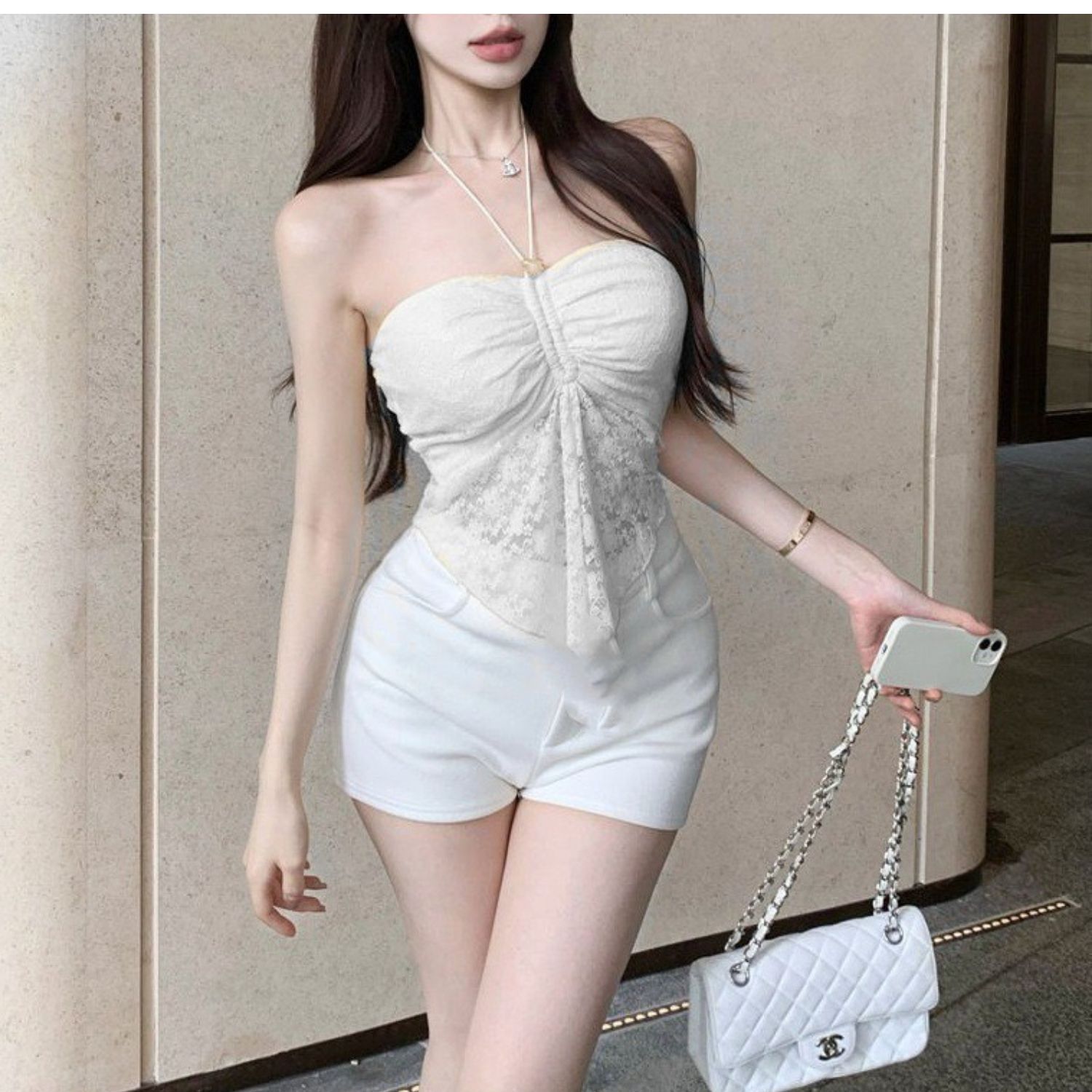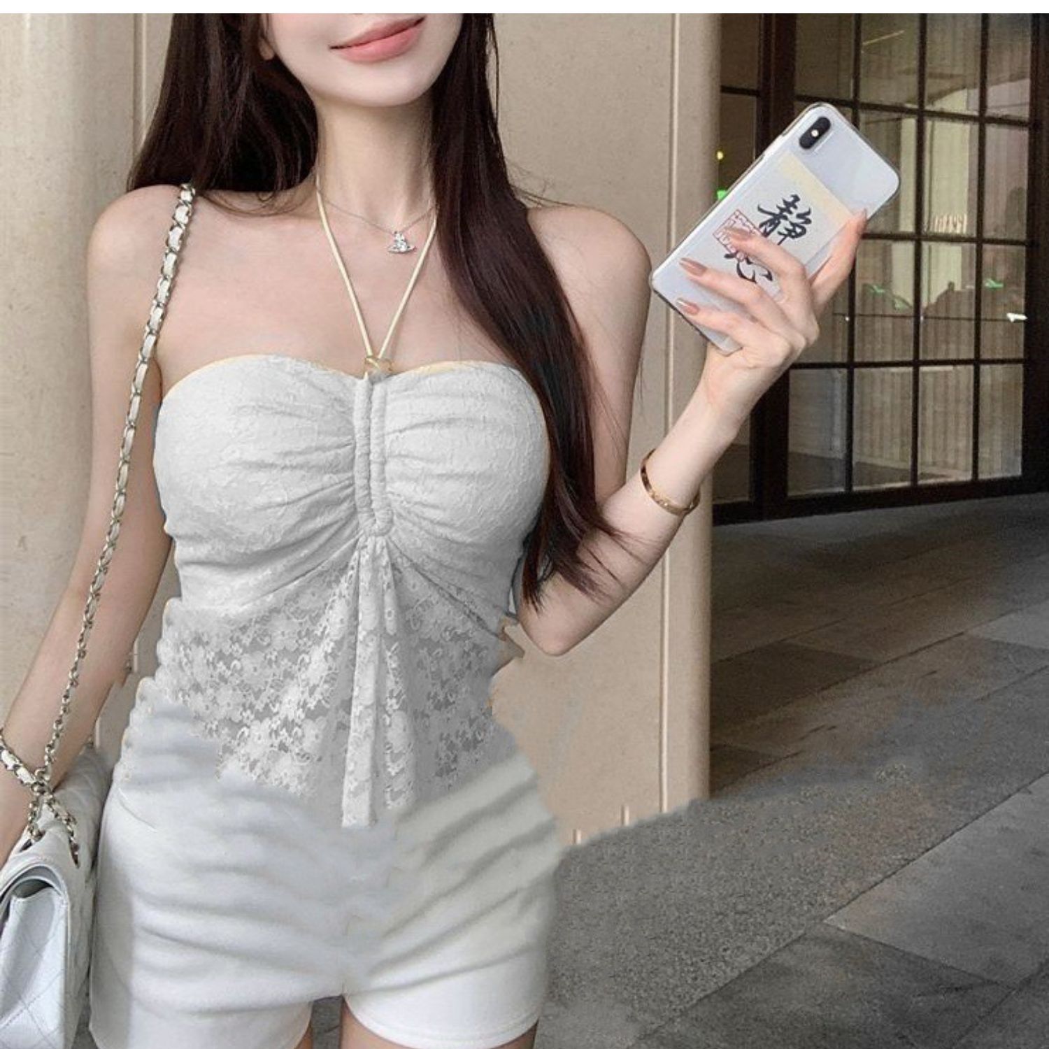 黄色蕾丝抹胸背心女春夏纯欲性感漏肩上衣修身显瘦短款内搭打底衫