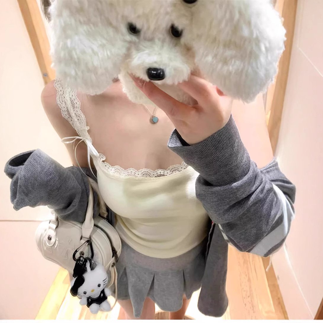 德绒花边吊带背心女保暖秋冬新款蕾丝拼接德绒遮副乳内搭打底上衣