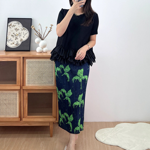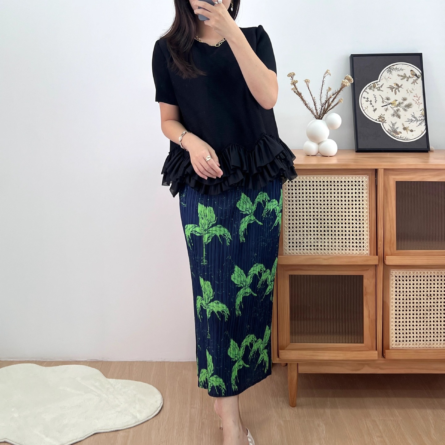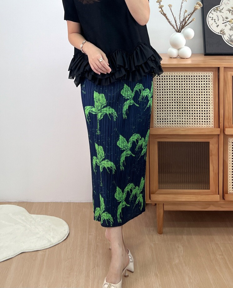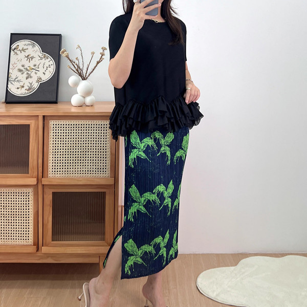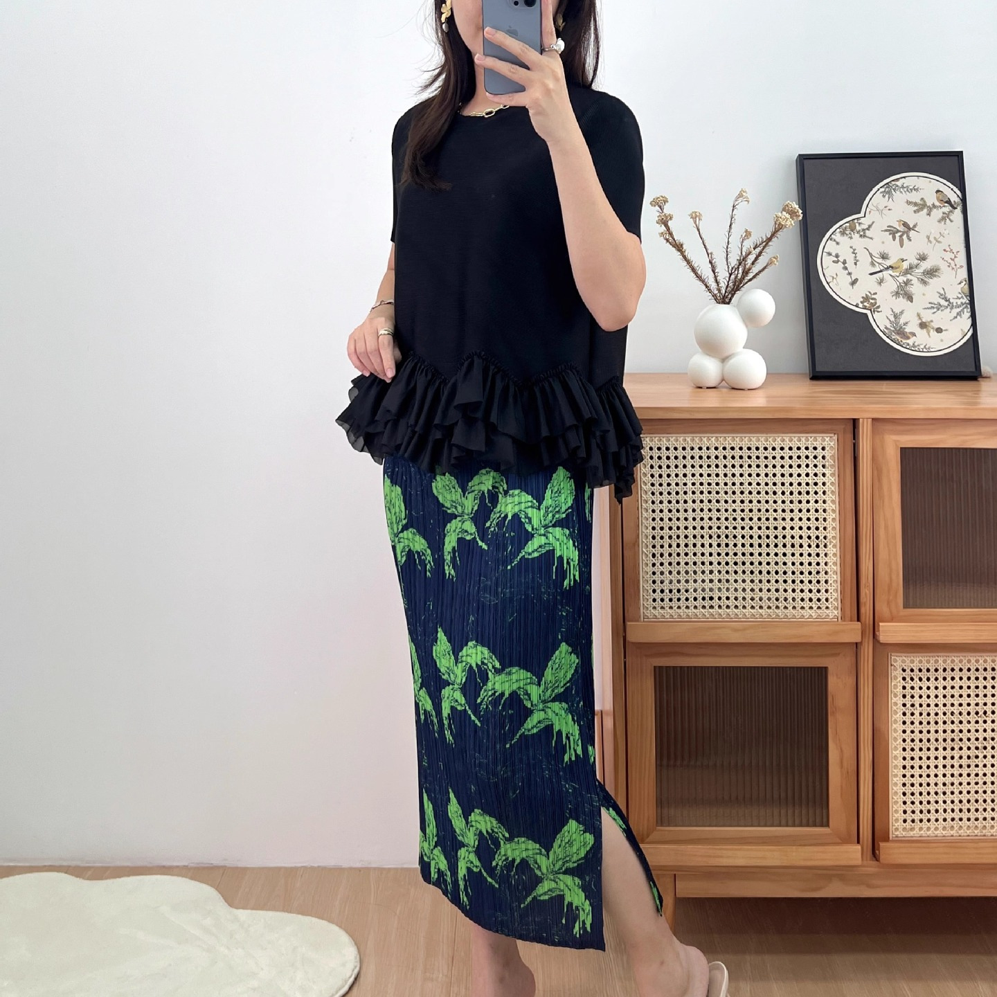 大码褶皱开叉半身裙女夏季新款高腰显瘦小众设计感梨型a字百褶裙