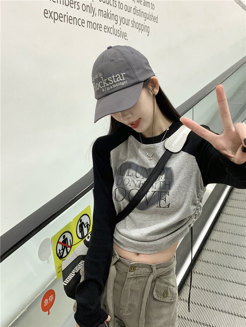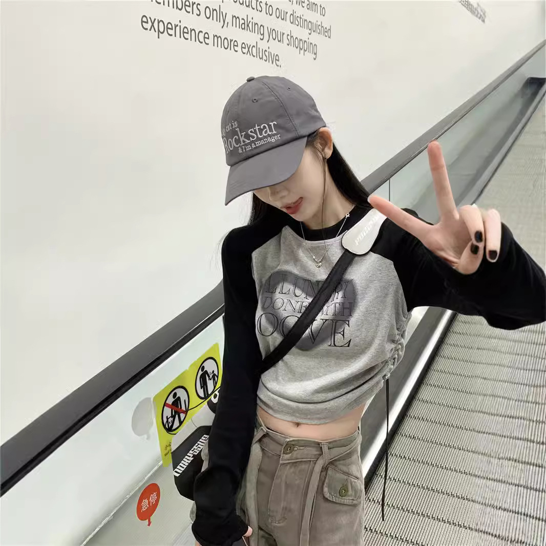 短款收腰撞色甜辣风长袖t恤女2025新款洋气设计感正肩潮秋装上衣