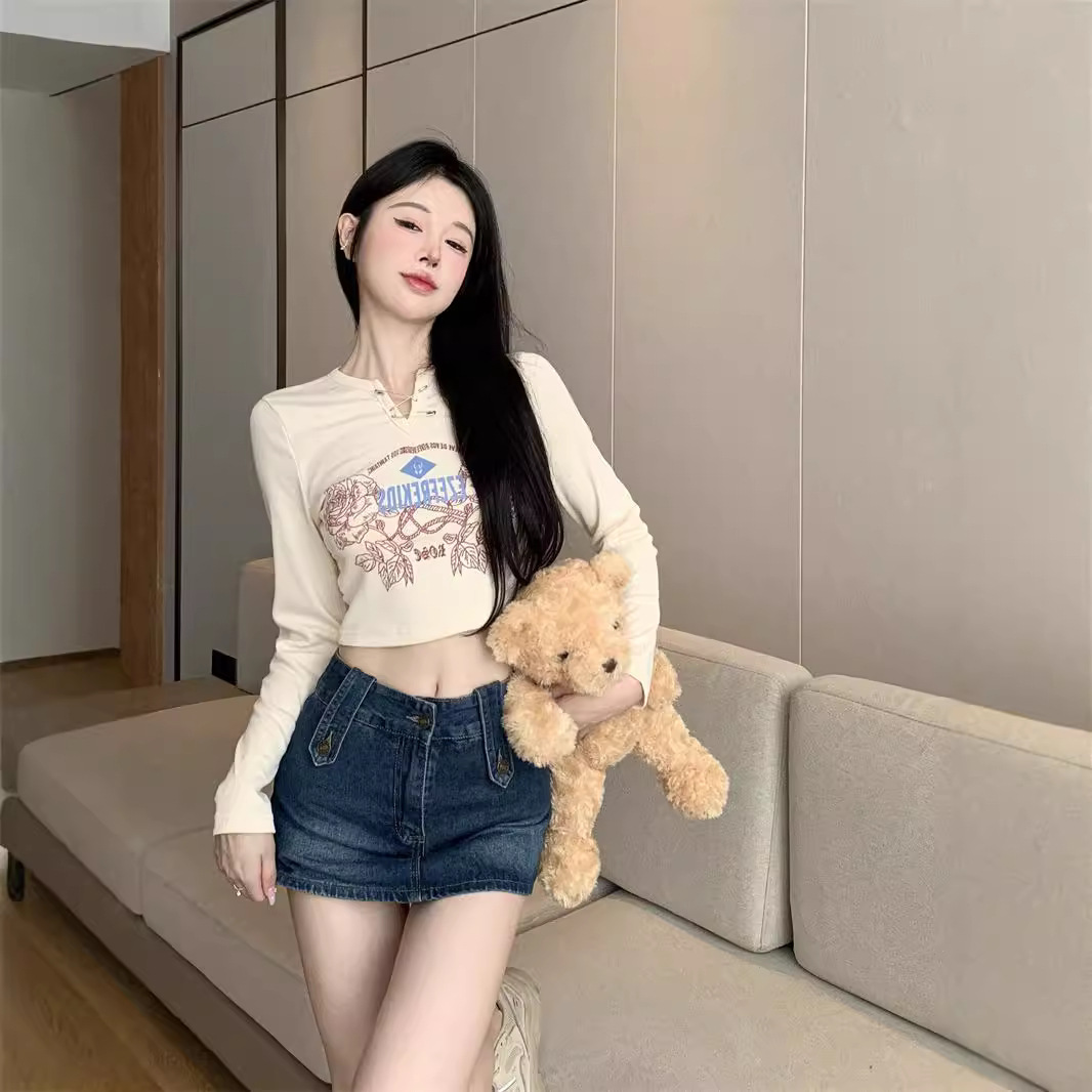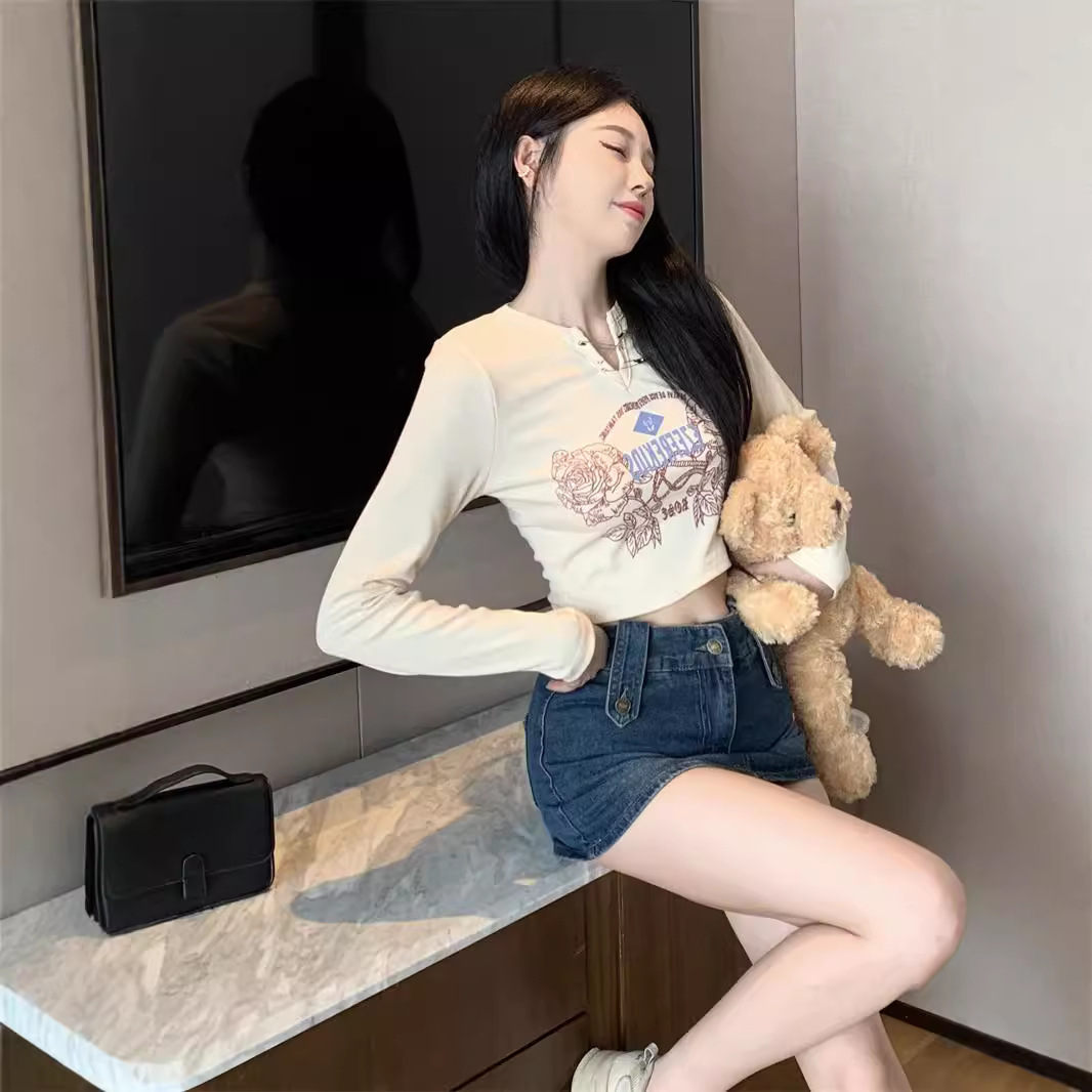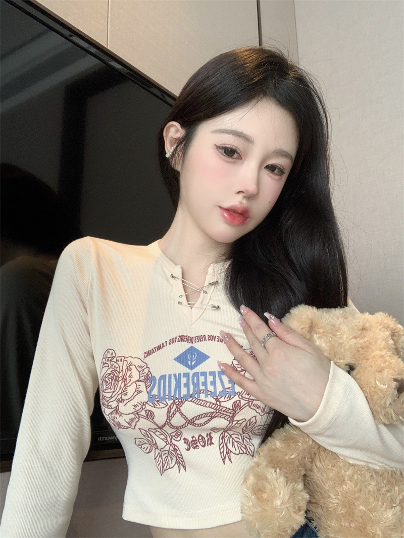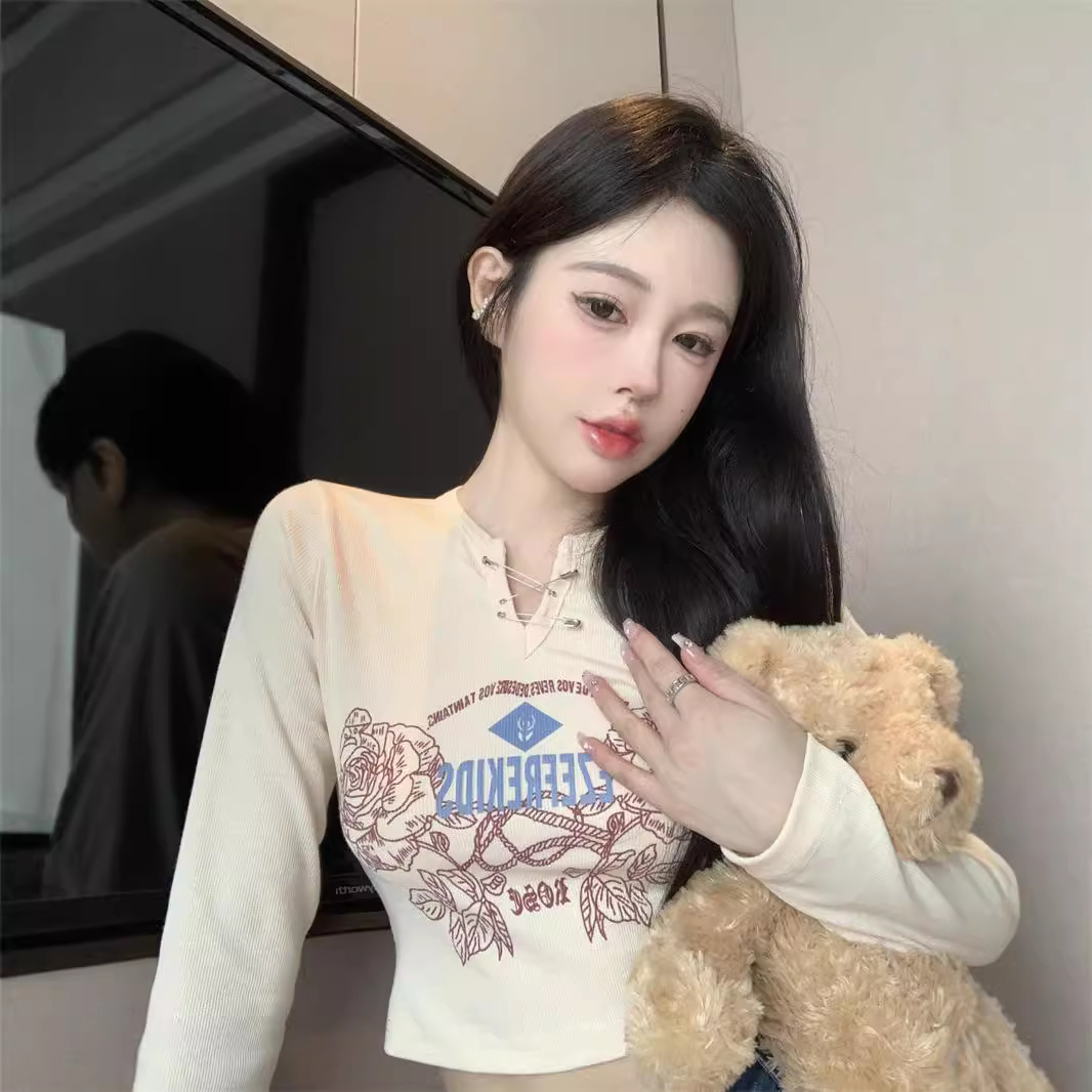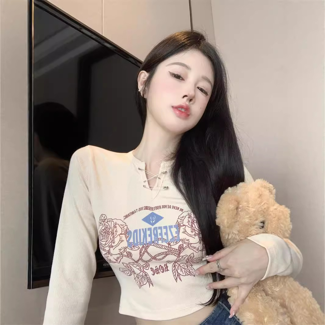 纯欲风长袖t恤女初秋季韩版内搭修身显瘦打底衫辣妹短款上衣外穿