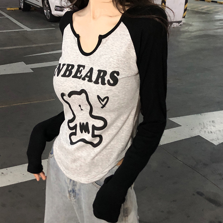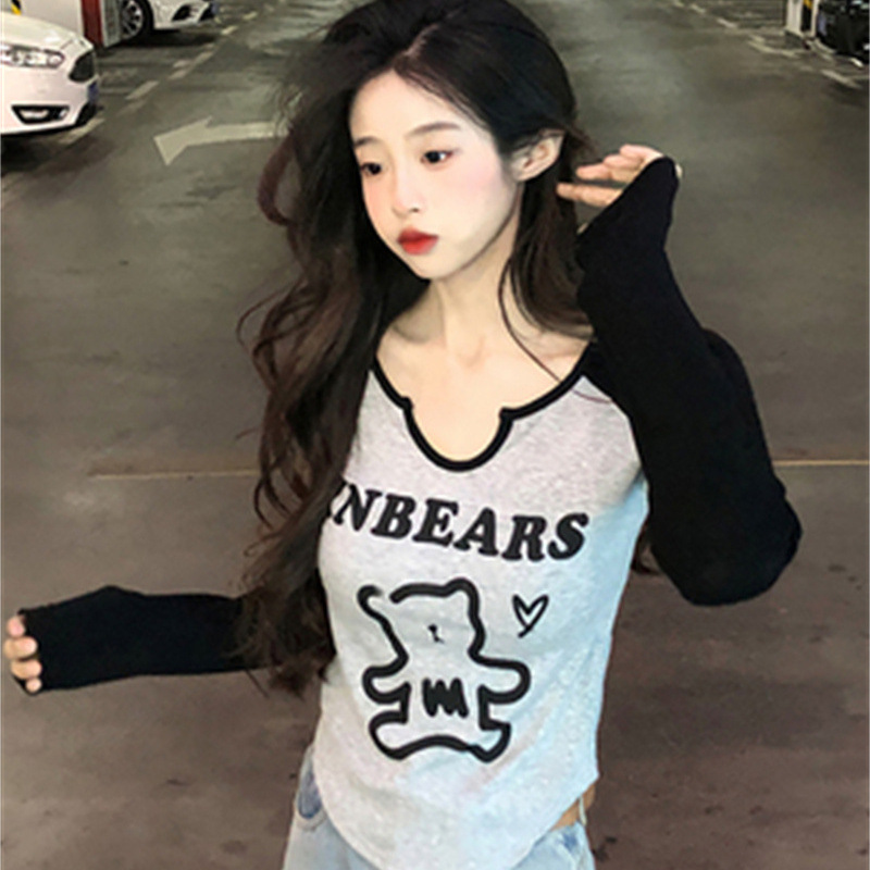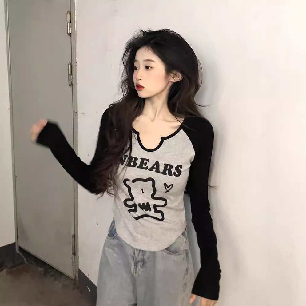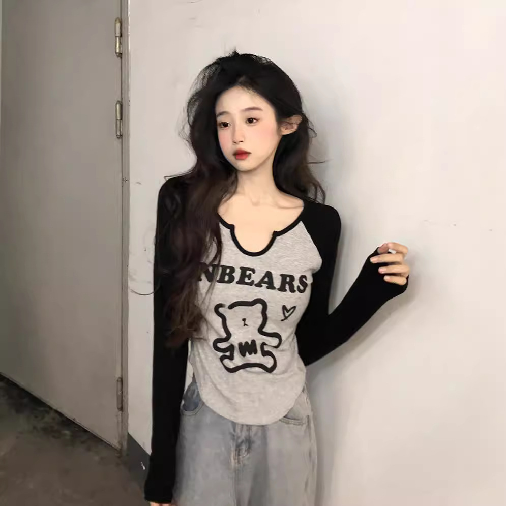 胖大码300斤遮肚恤女装春秋季韩版新款显瘦拼色设计感长袖上衣