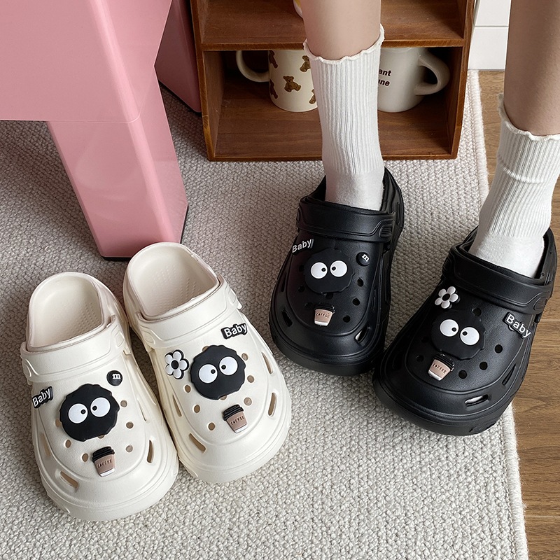 踩屎感洞洞鞋女士夏季新款可爱厚底增高防滑包头拖鞋女款外穿