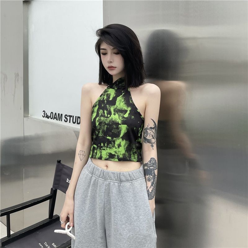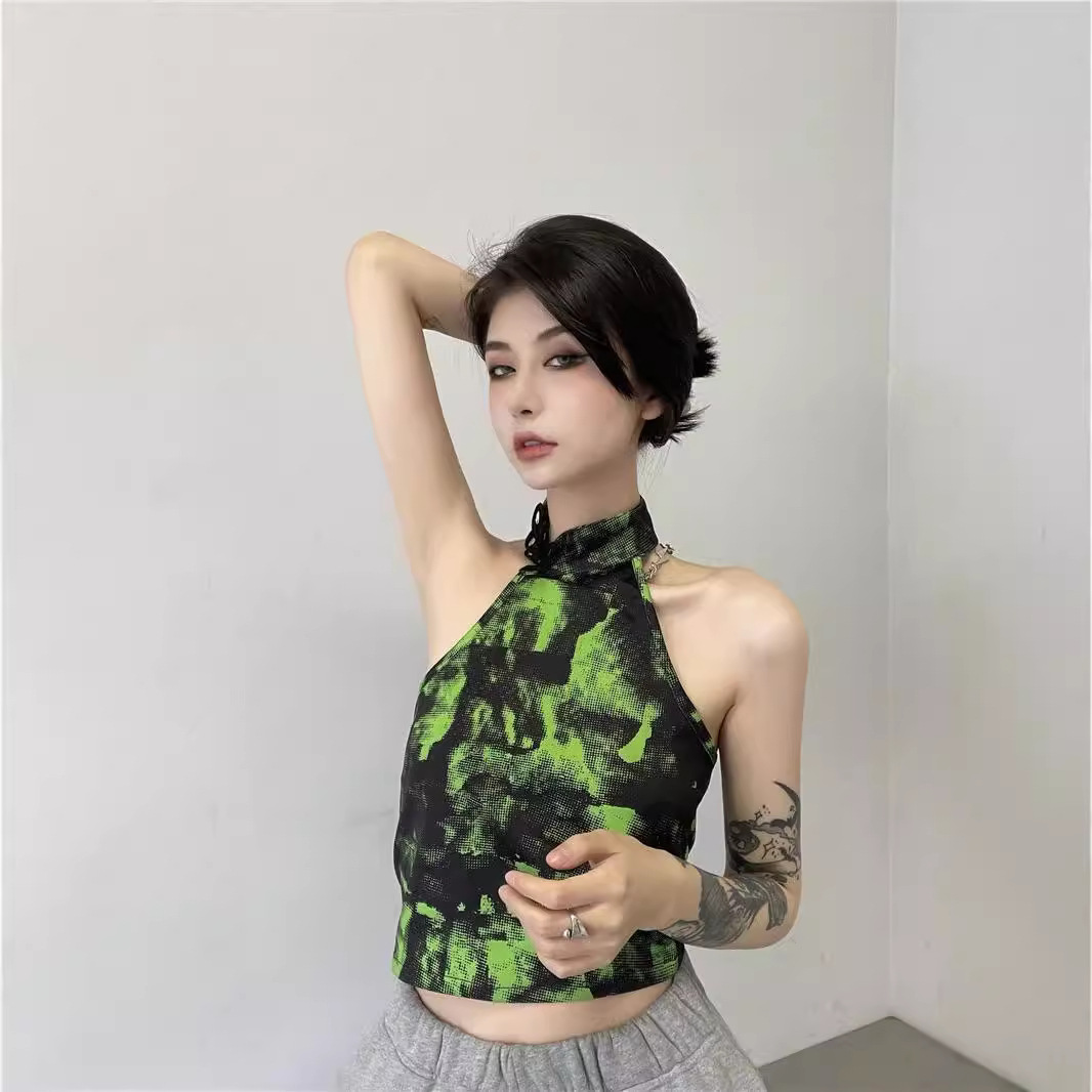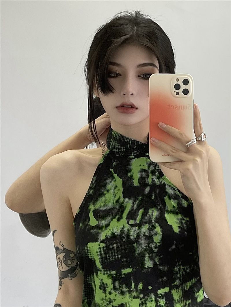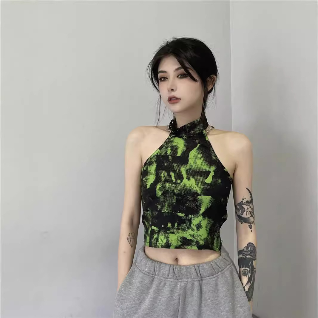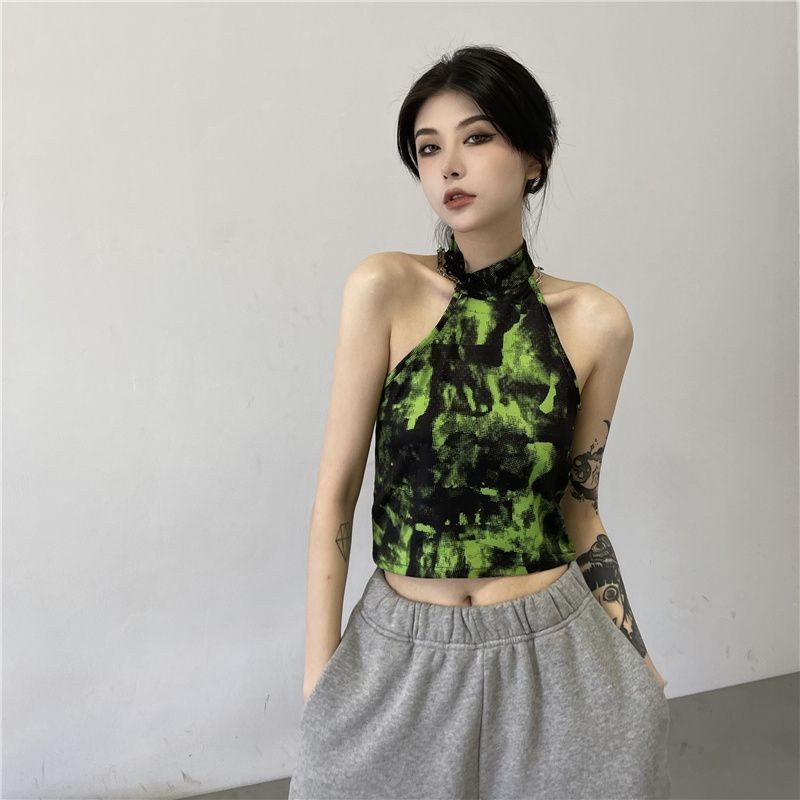 纯欲风辣妹扎染挂脖吊带背心女内搭夏季抹胸外穿打底性感无袖上衣