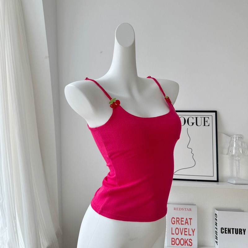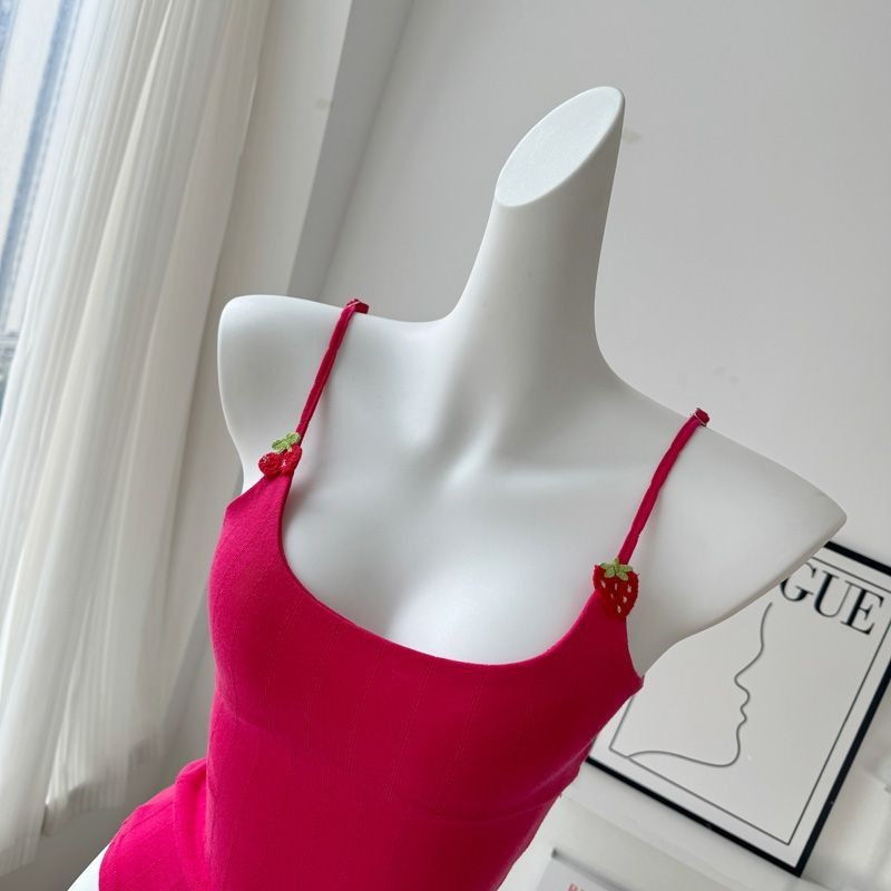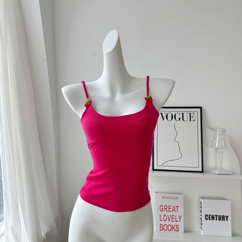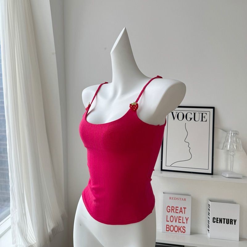 甜辣纯欲钩花水果玫红色外穿吊带背心女夏季新款修身显瘦打底上衣