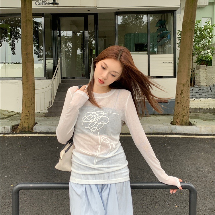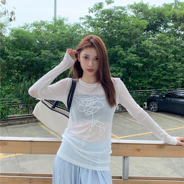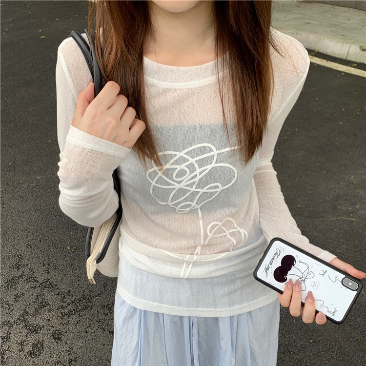 设计感小众透视防晒罩衫T恤女2025夏季新款小众薄款百搭上衣透气