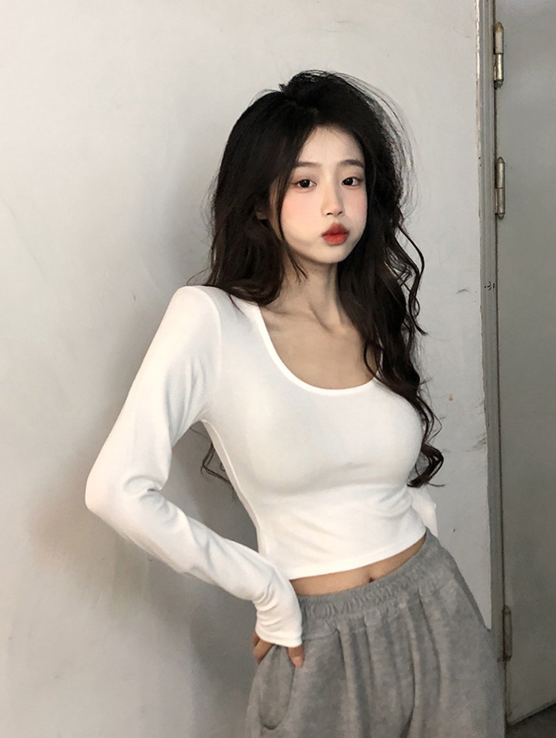 辣妹新款开衫长袖针织T恤打底衫女秋冬穿搭新款内搭修身上衣