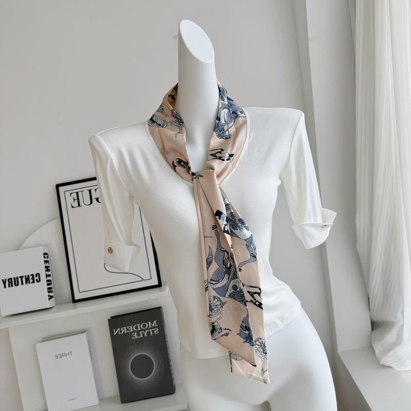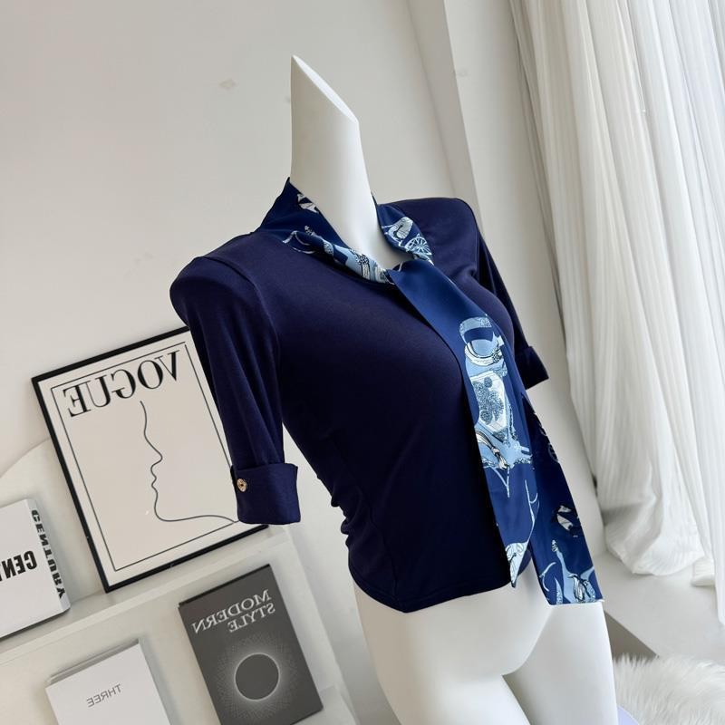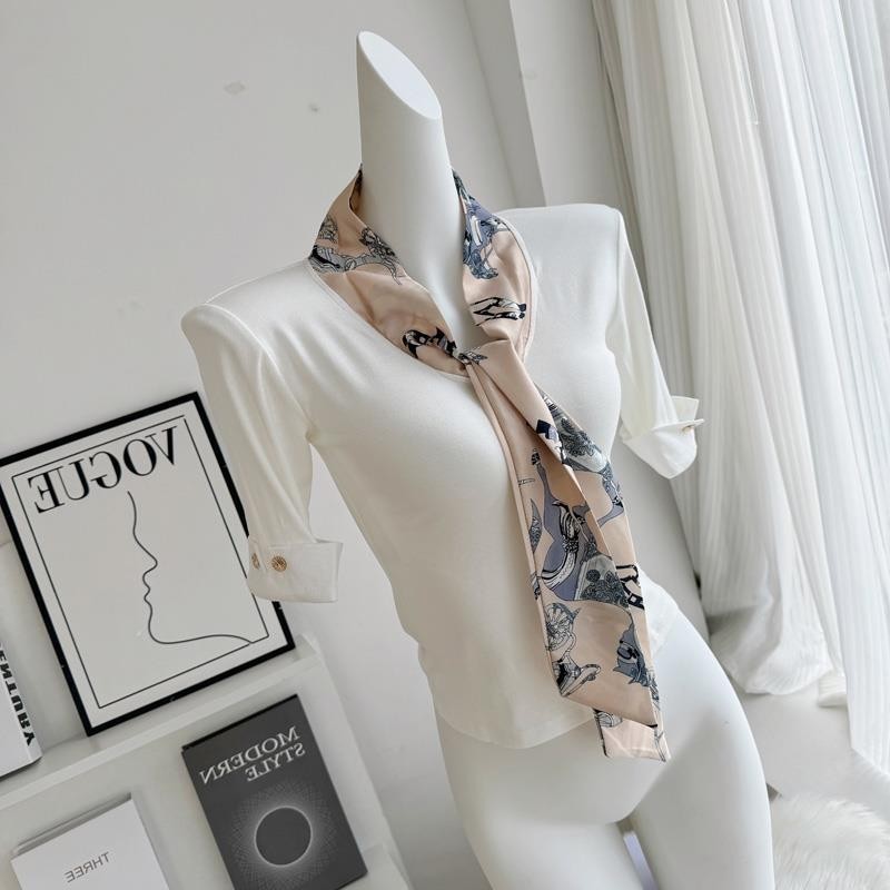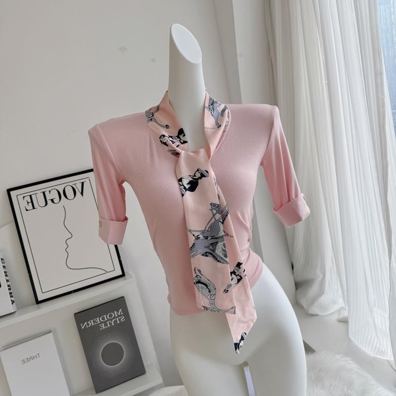 韩系穿搭秋冬纯欲显身材上衣设计感飘带v领t恤洋气高端别致小衫女