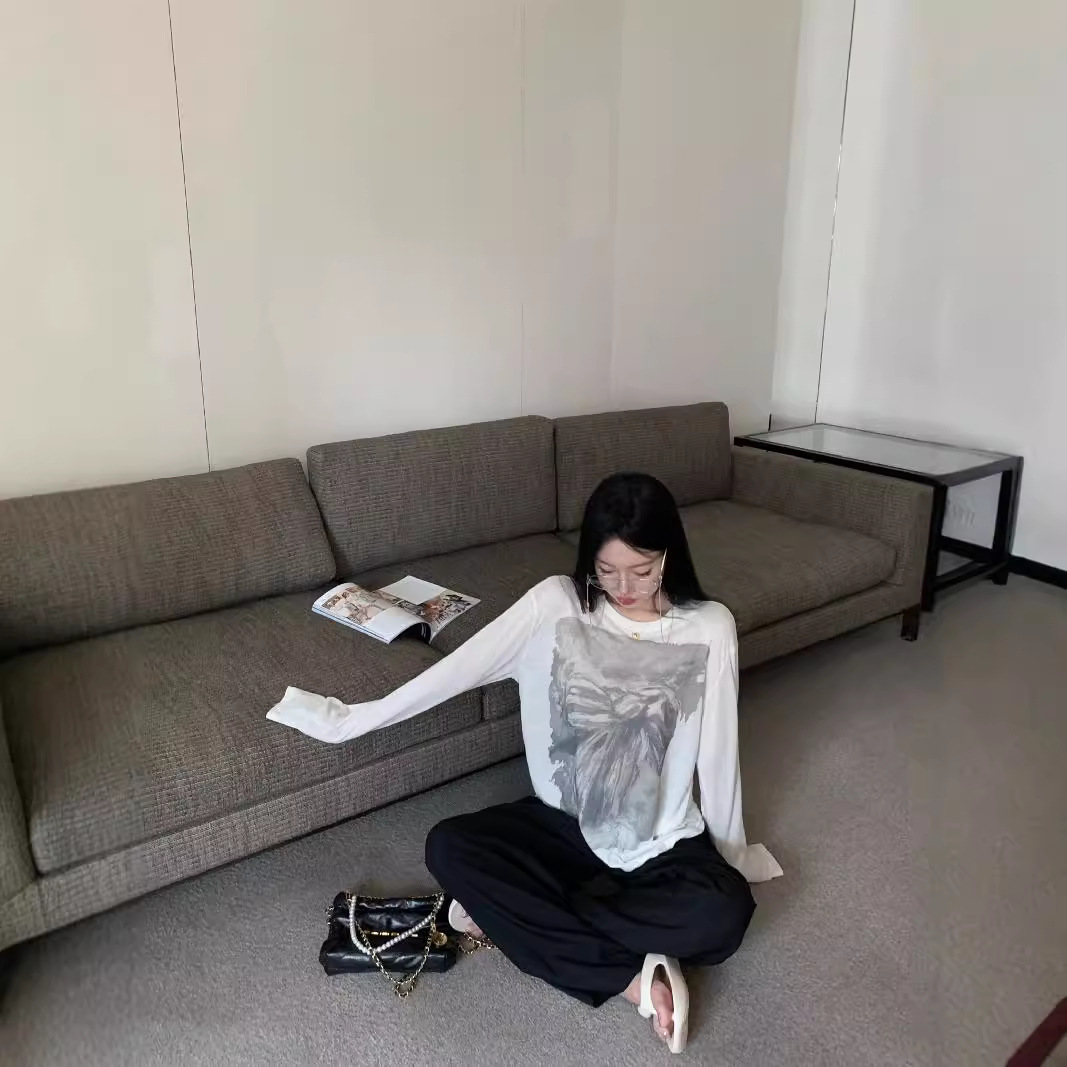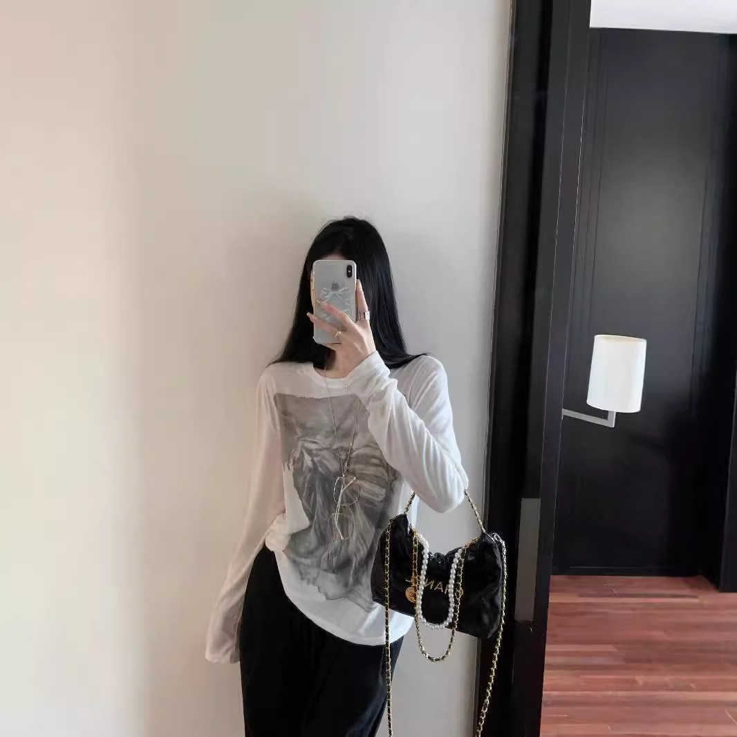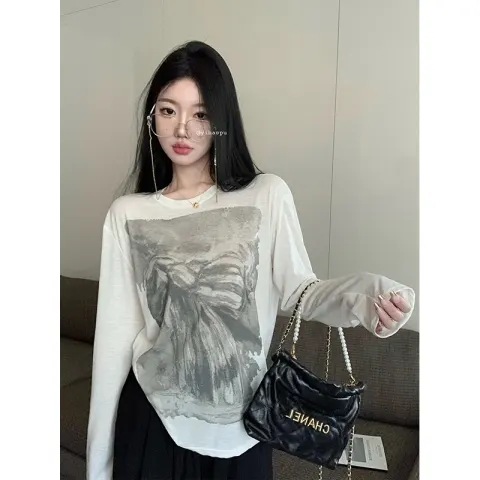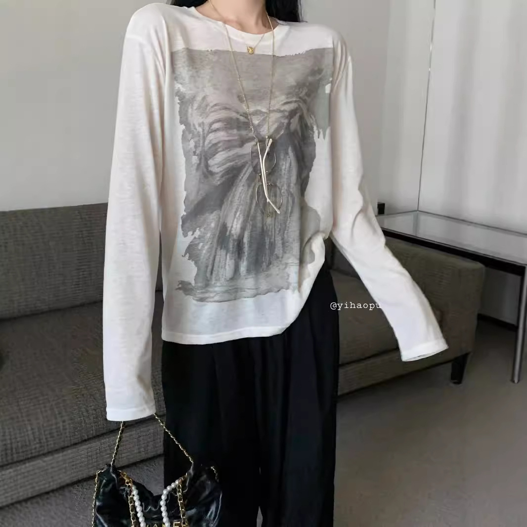 扎染晕染慵懒风T恤女夏薄款设计感印花圆领宽松防晒罩衫长袖上衣