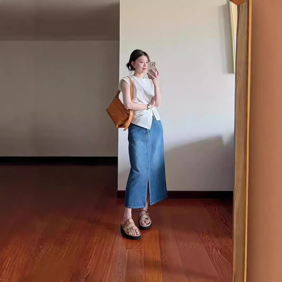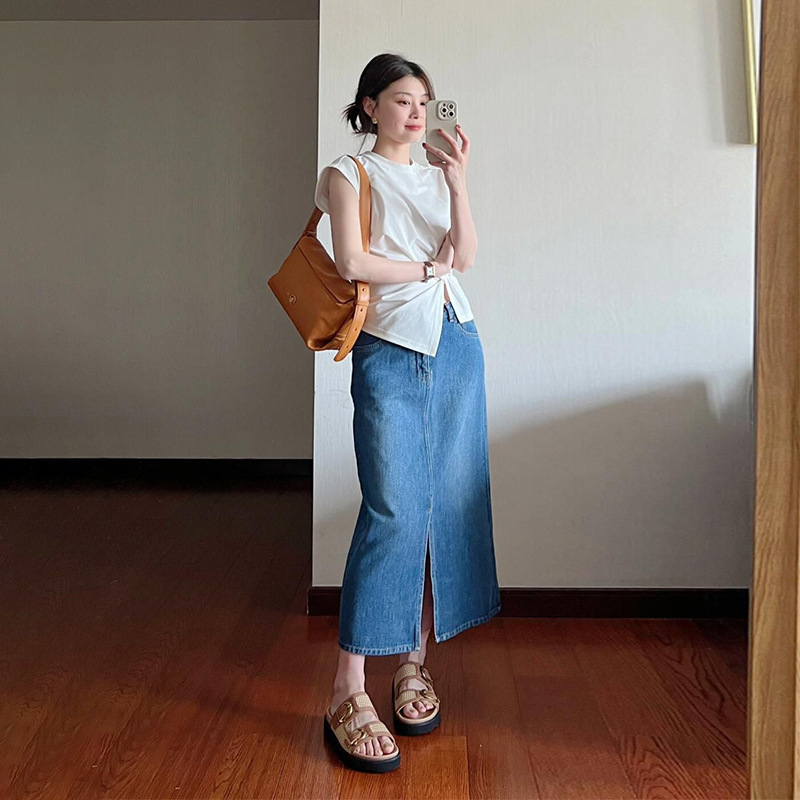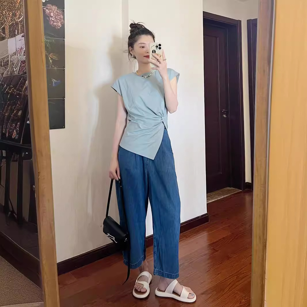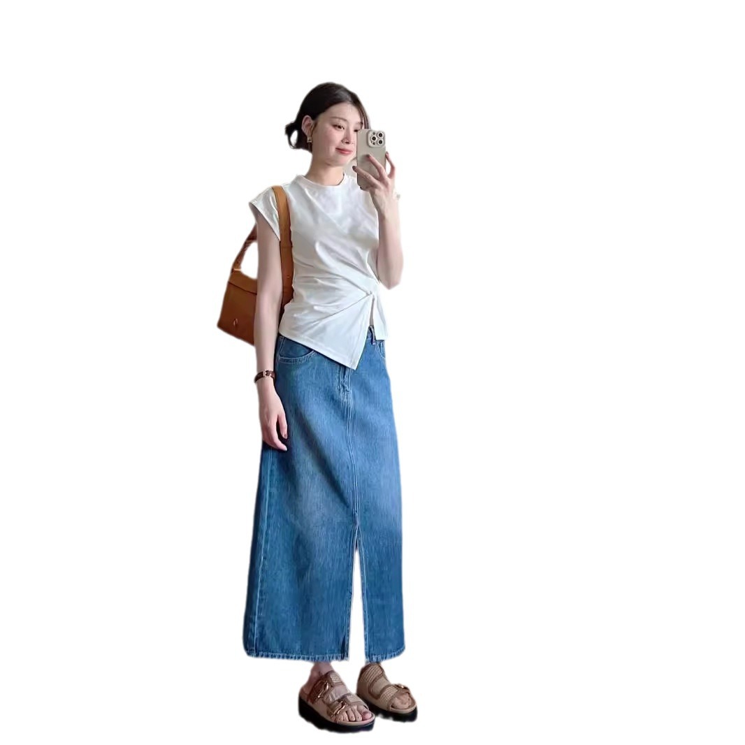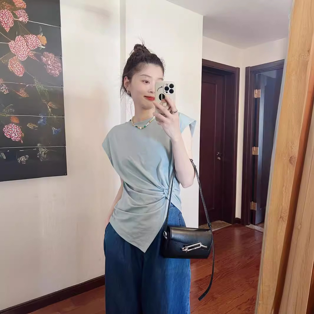 纯棉韩不规则开叉短袖女t恤夏季2025新款掐腰设计感小众别致上衣