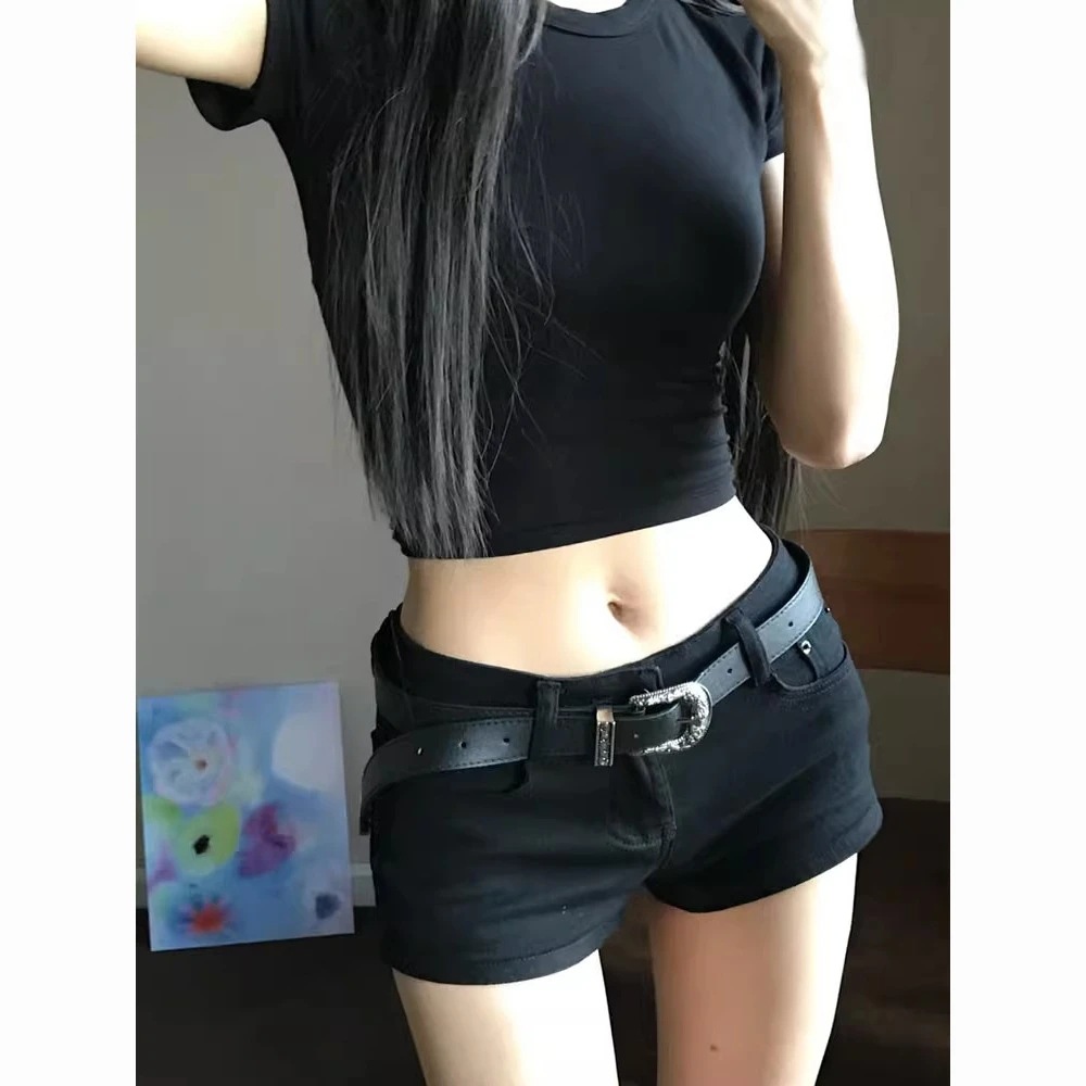 黑色低腰牛仔超短裤女夏包臀y2k轻亚文化热裤美式辣妹弹力裤子潮