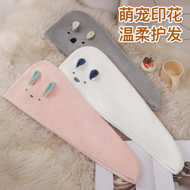 日韩卡通兔耳朵干发帽加厚三角巾浴帽珊瑚绒吸水干发巾