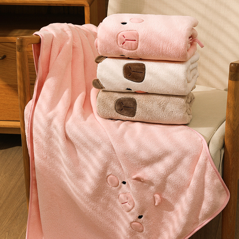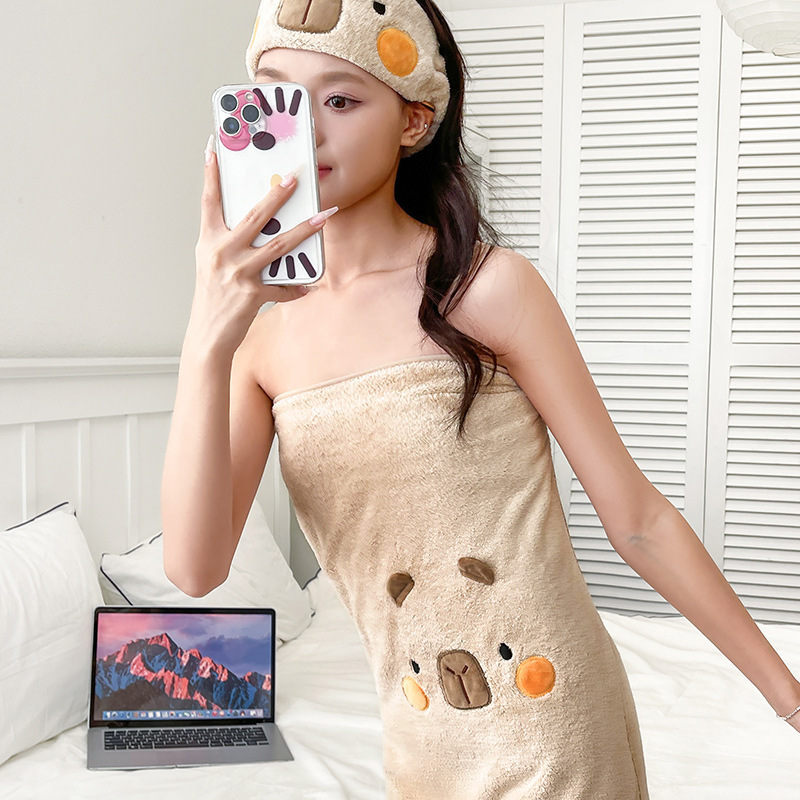 卡皮巴拉水豚珊瑚绒浴巾加厚加大吸水速干家用送礼可穿不掉毛浴袍