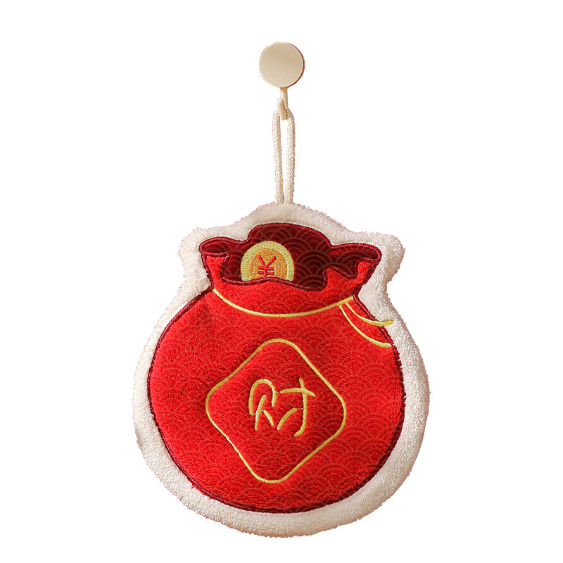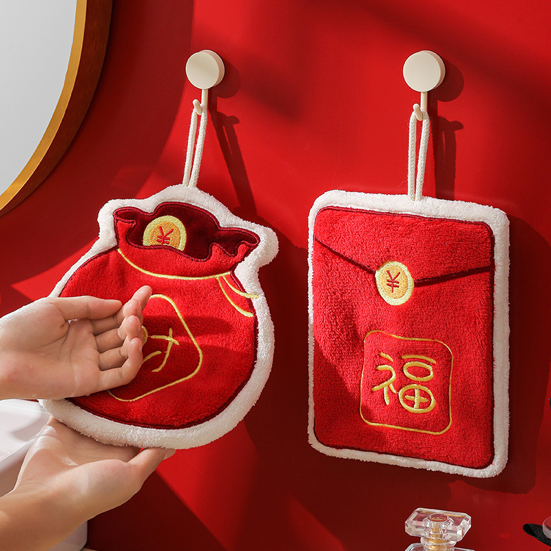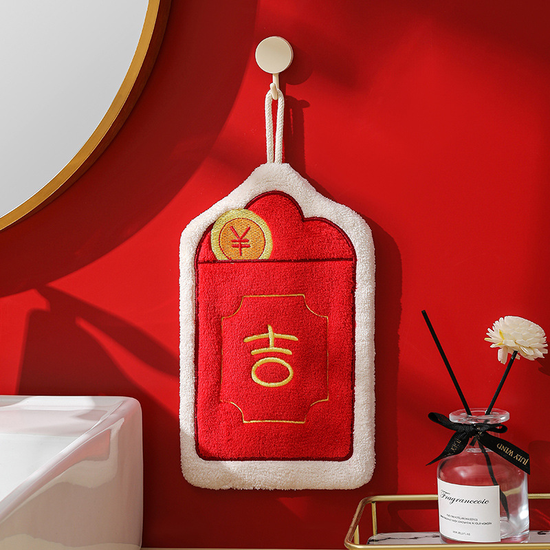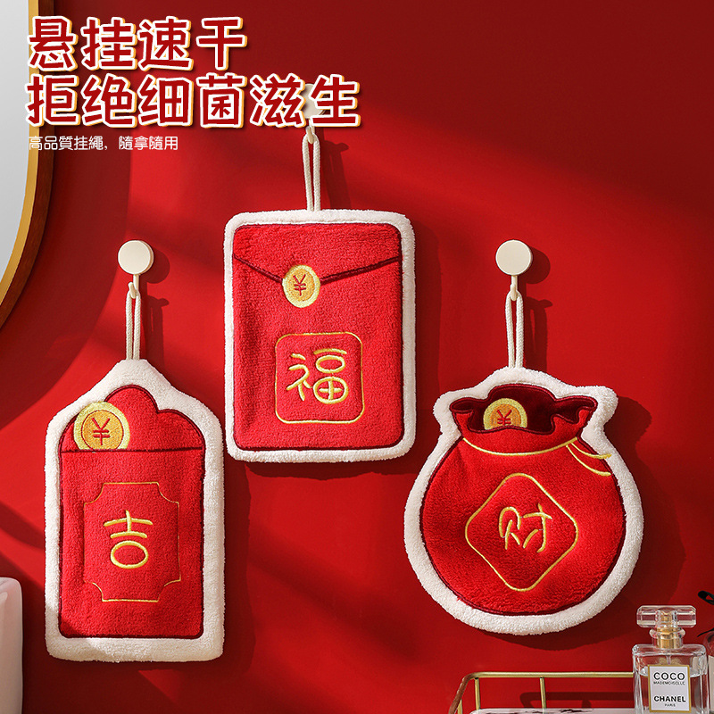 新春珊瑚绒大红包擦手巾伴手礼礼品毛巾厨房挂式两用吸水巾