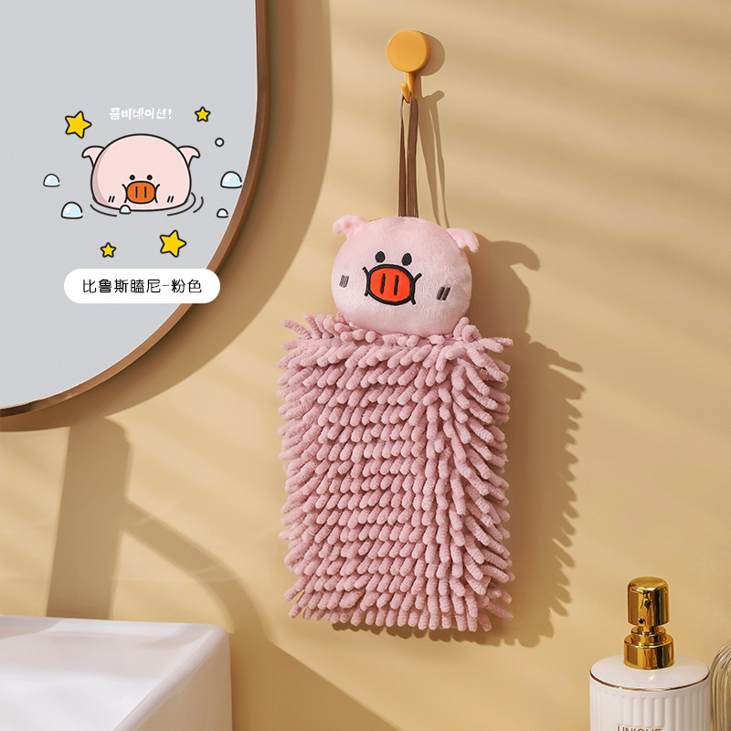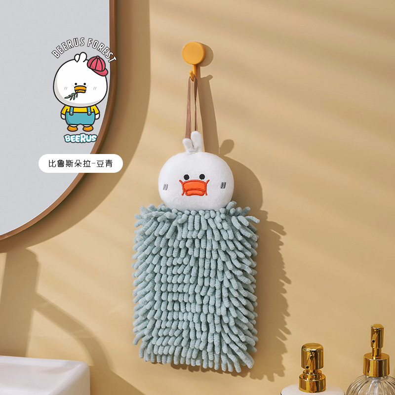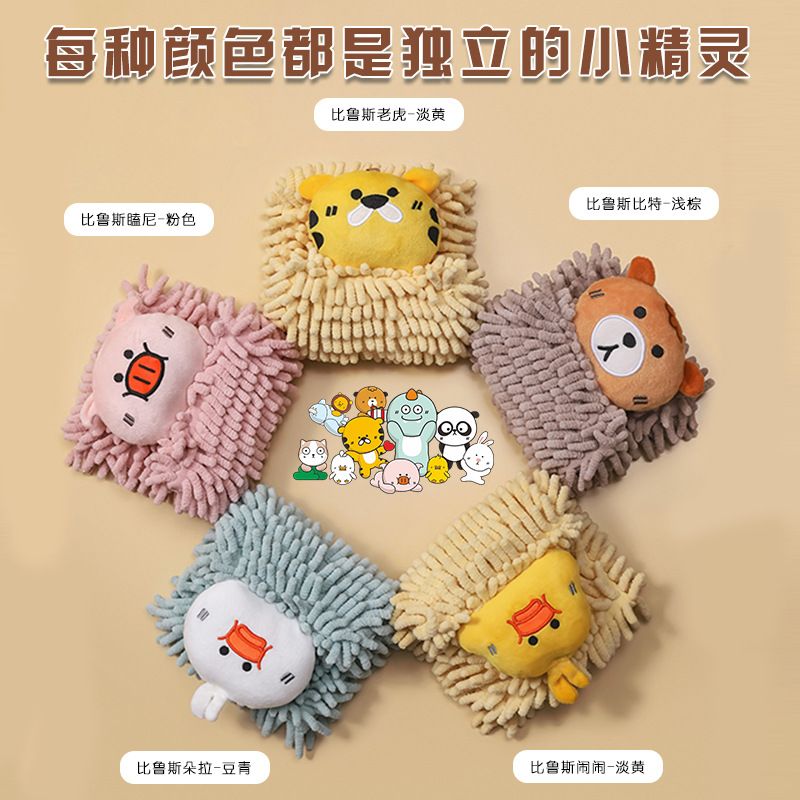 卡通比鲁斯雪尼尔擦手巾挂式可爱动物擦手球家用儿童厨房擦手方巾