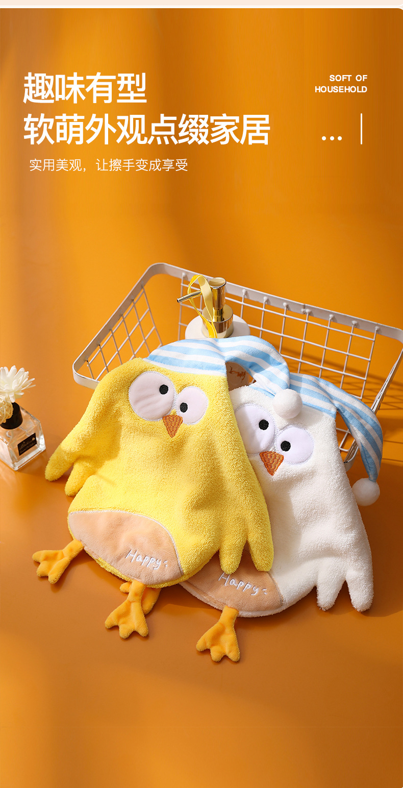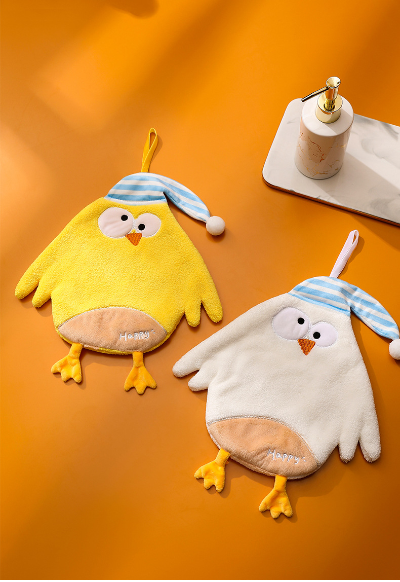 睡帽小鸡可爱挂式擦手巾儿童珊瑚绒吸水毛巾厨房卫生间两用手帕