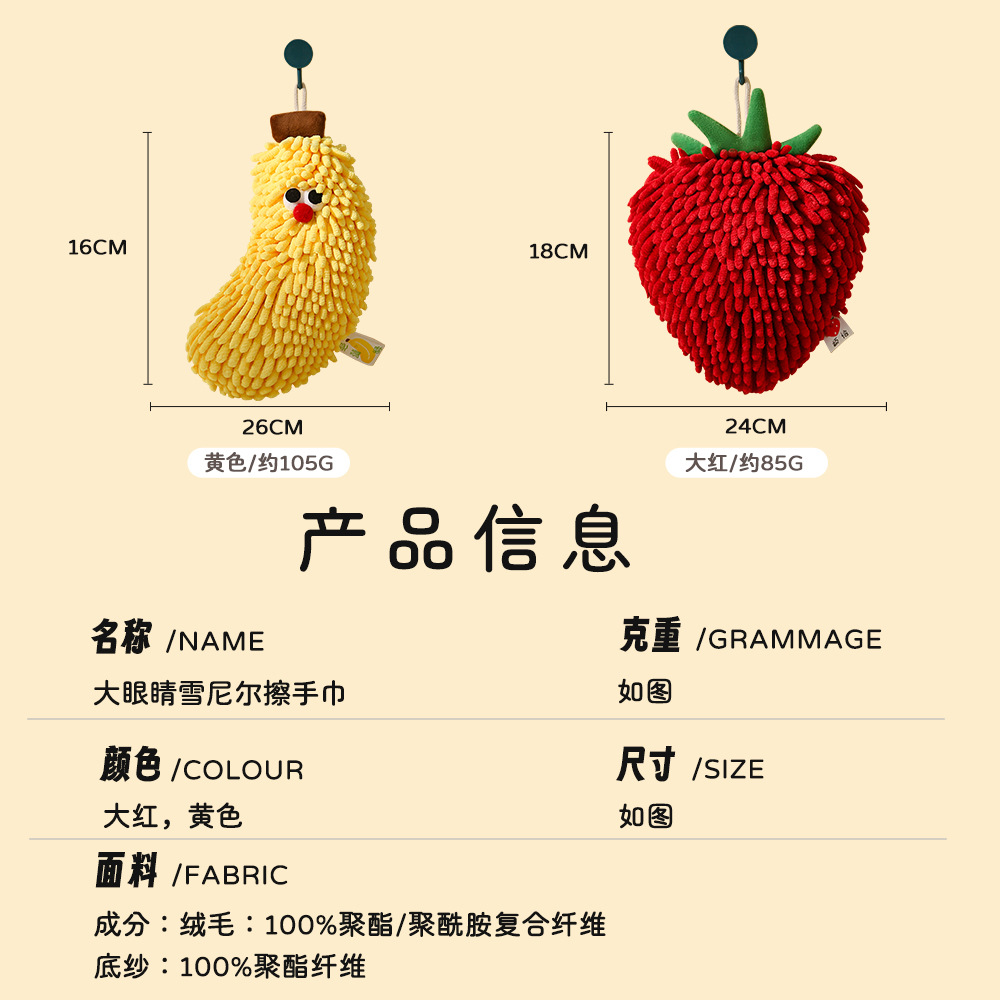 多巴胺萌趣大眼睛雪尼尔造型擦手巾创意可爱挂式毛巾大红喜庆年货